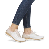 Codzienne półbuty damskie znanej marki Rieker pochodzęce z najnowszej kolekcji. Cholewka obuwia została wykonana z wysokiej jakości skóry ekologicznej licowej w białym odcieniu. Nosek okrągły, lekko uniesiony ku górze pozwoli na swobodne rozłożenie palców. Wkładka wykonana z miękkiej tkaniny, która umożliwia przepuszczalność powietrza. Całość oparta na 2 centymetrowej platformie. Sznurowanie na 4 dziurki gwarantuje swobodne dopasowanie obuwia do różnej tęgości kobiecej stopy. Model z pewnością przypadnie do gustów wielu pań.