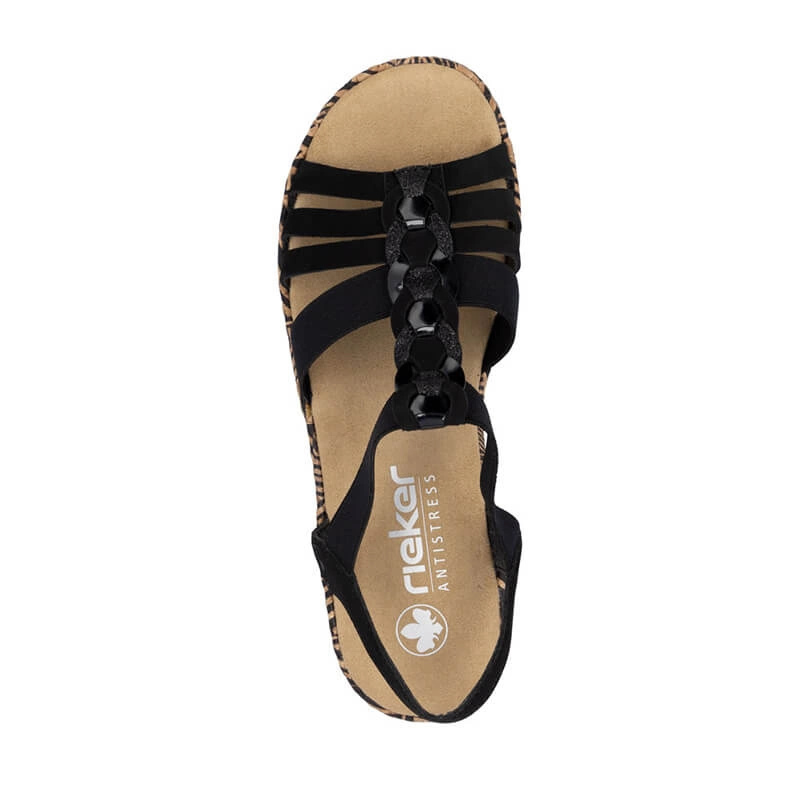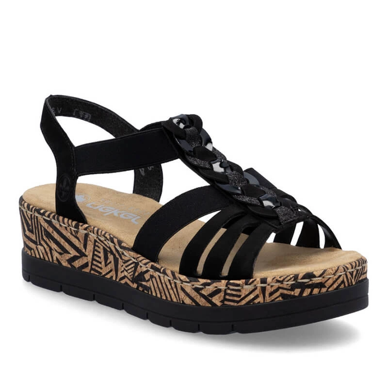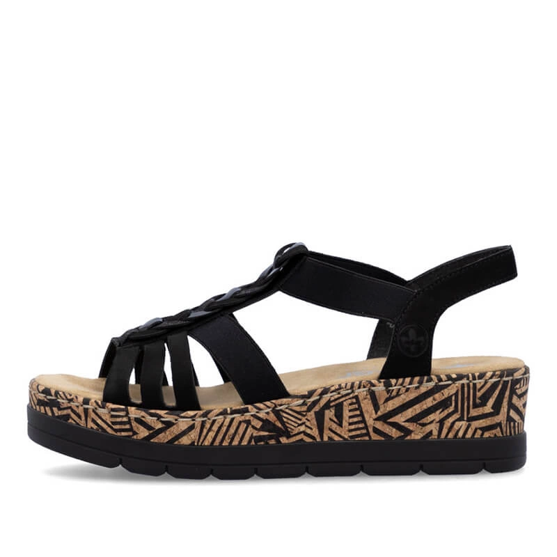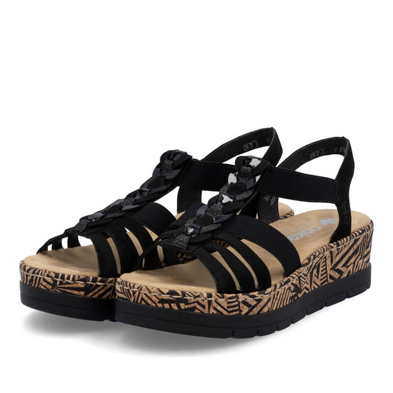 • Modne czarne sandały damskie na platformie Rieker V3902-00
