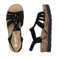 Modne czarne sandały damskie na platformie Rieker V3902-00