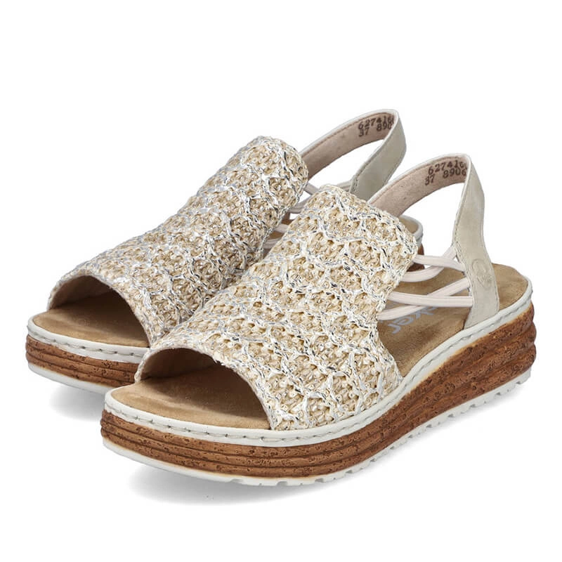Sandały damskie Rieker 62741-60 beżowe wsuwane na platformie