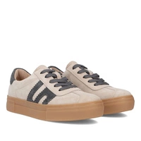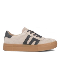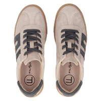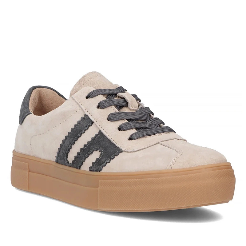 Półbuty damskie sneakersy beżowe — zamszowa cholewka i platformowa podeszwa