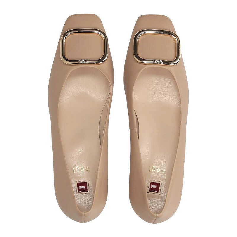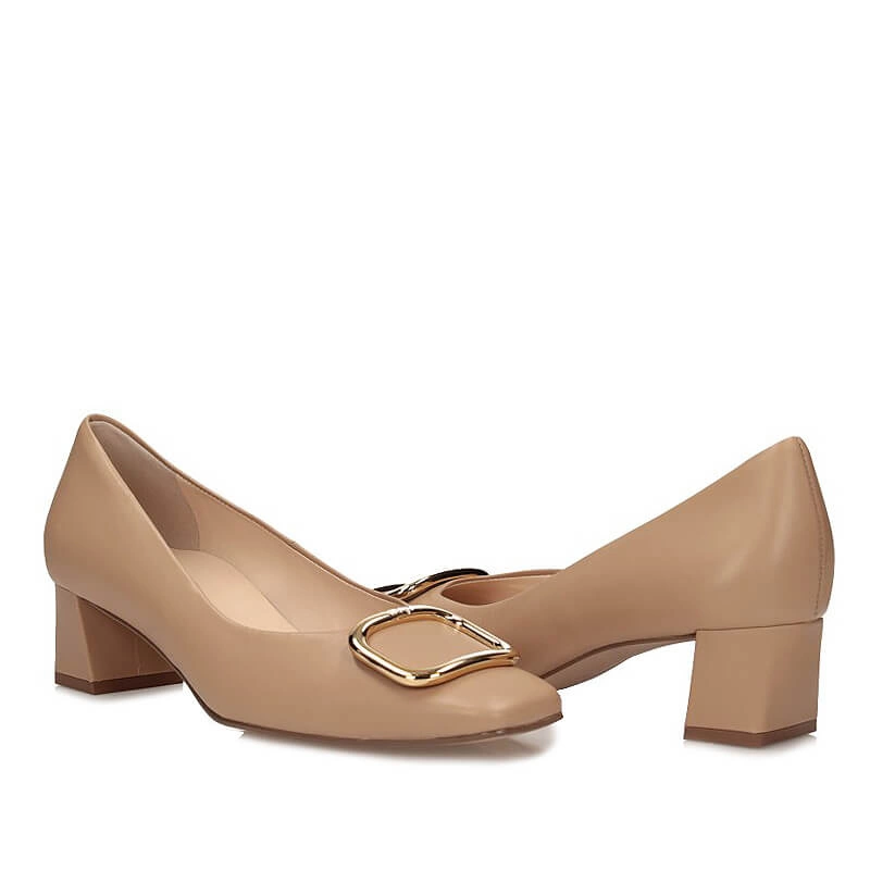 Beżowe biznesowe czółenka — skóra licowa i obcas 4,5 cm
