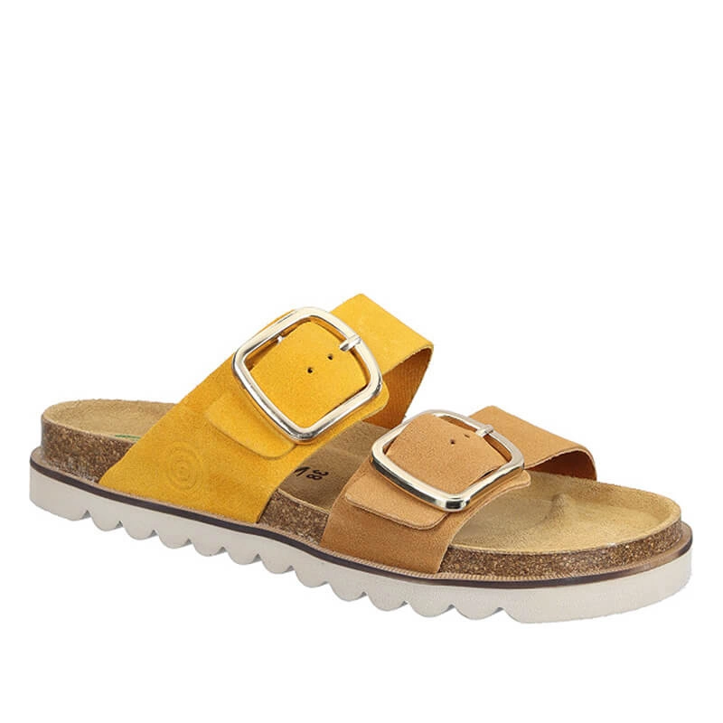 Stylowe klapki damskie znanej i szanowanej marki Dr Brinkmann pochodzące z najnowszej kolekcji. Wkładka typu fusbet wykonana z naturalnej skóry.
