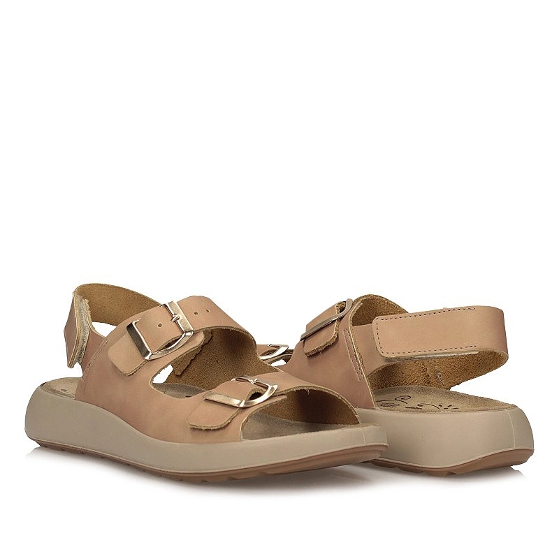 Wygodne Włoskie Sandały damskie na platformie znanej i szanowanej Włoskiej marki IMAC pochodzące z najnowszej kolekcji Cholewka wykonana ze skóry naturalnej nubukowej w beżowym odcieniu.
