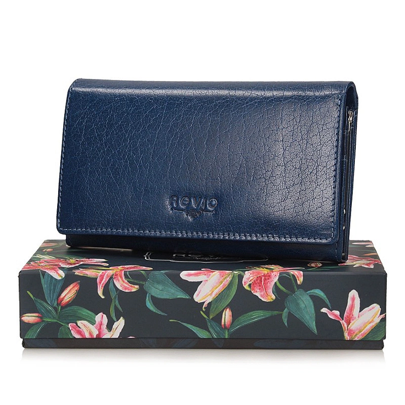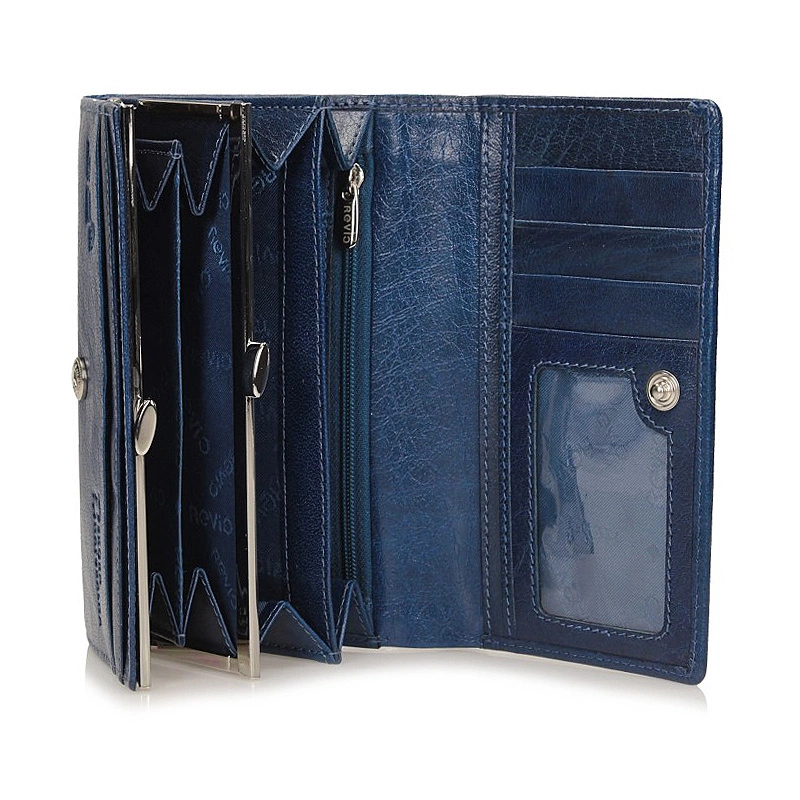 Duży niebieski portfel ze skóry naturalnej znanej i szanowanej marki Revio pochodzący z najnowszej kolekcji.