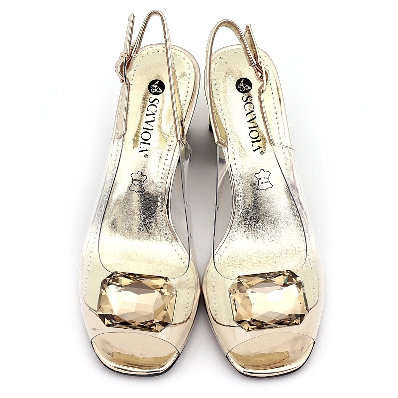 Eleganckie złote sandały na obcasie znanej i szanowanej marki Sca'viola pochodzące z najnowszej kolekcji.