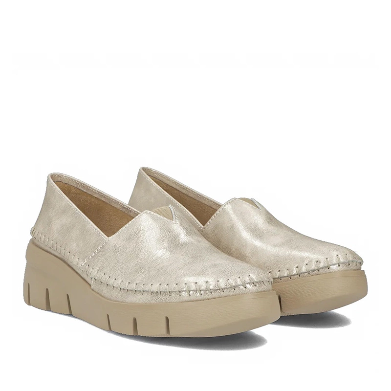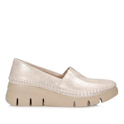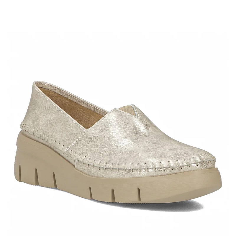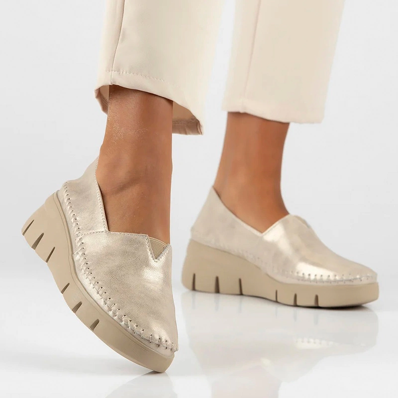 Modne złote półbuty damskie na koturnie znanej i szanowanej marki Filippo pochodzące z najnowszej kolekcji.