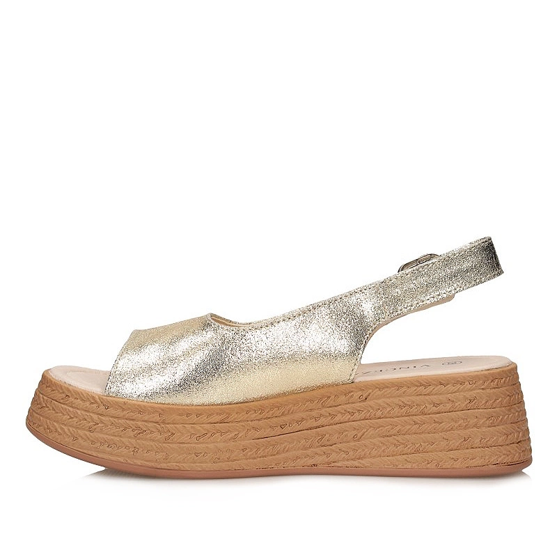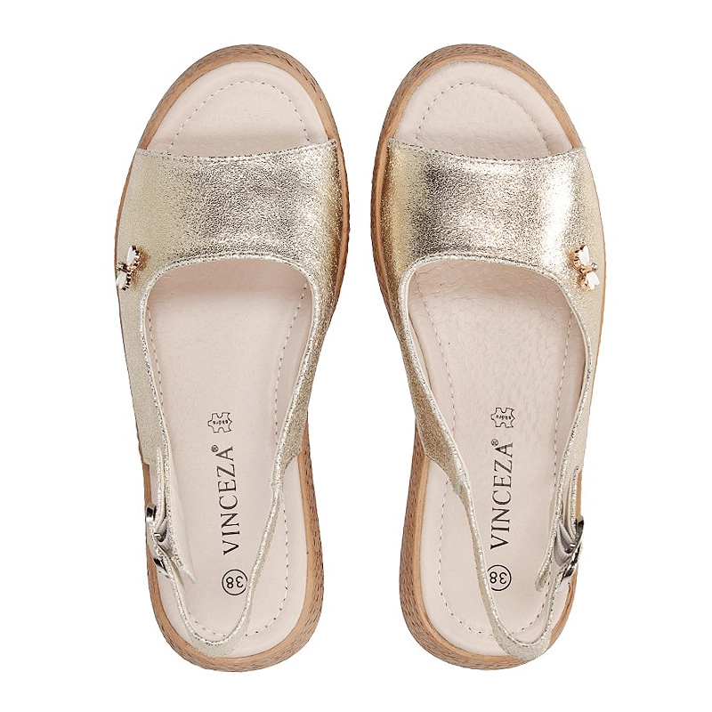Stylowe złote sandały damskie na platformie znanej i lubianej marki vinceza pochodzące z najnowszej kolekcji.