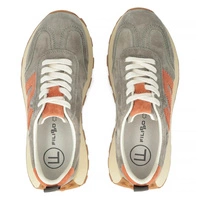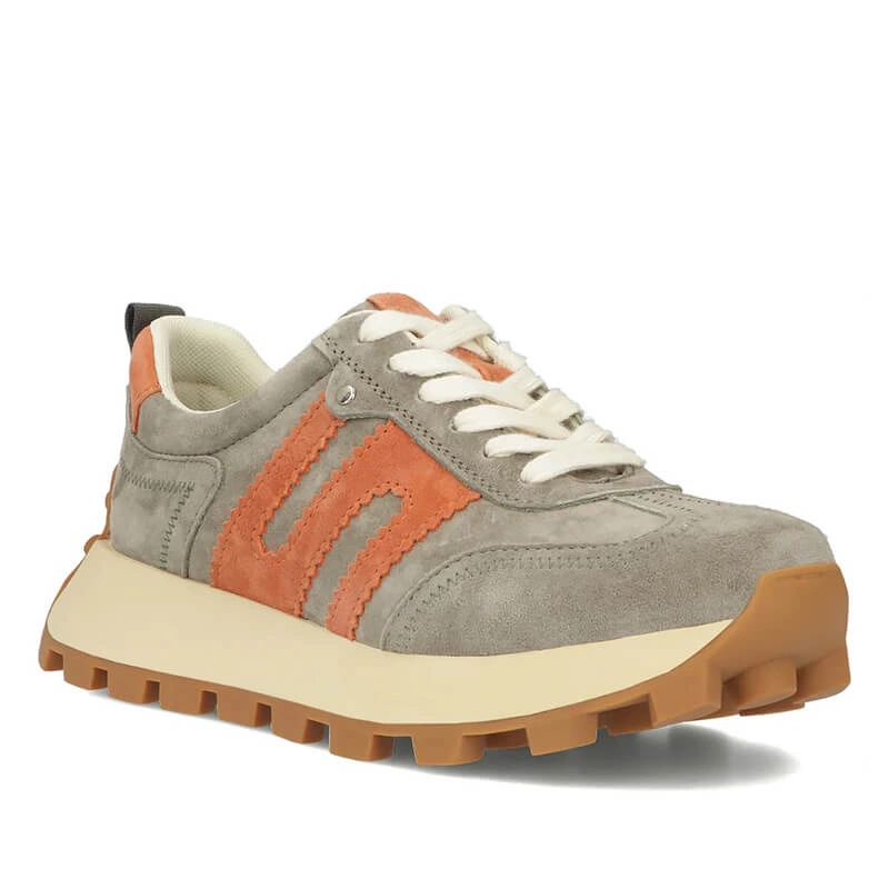 Klasyczne sznurowanie umożliwia precyzyjne dopasowanie zabudowy do kształtu stopy, poprawiając stabilność; dostępne w wersjach kolorystycznych: szarym, pomarańczowym i zielonym, dzięki czemu można łatwo dopasować model do neutralnych lub odważniejszych zestawień. Świetne z jeansami i trenczem na co dzień, albo jako akcent kolorystyczny do sukienki podczas weekendowych wyjść.