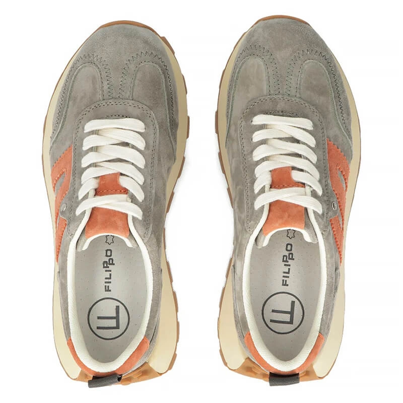 • Sneakersy damskie Filippo DP6743/26 KH OR szare sznurowane skórzane na platformie