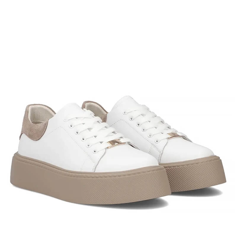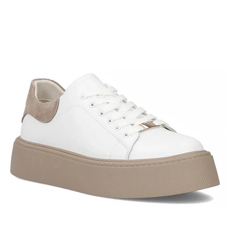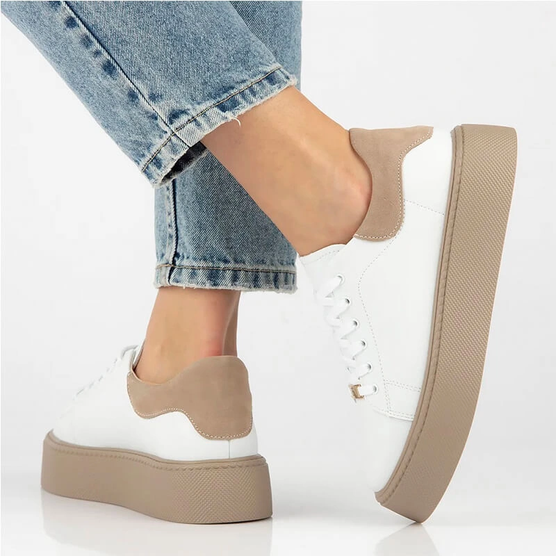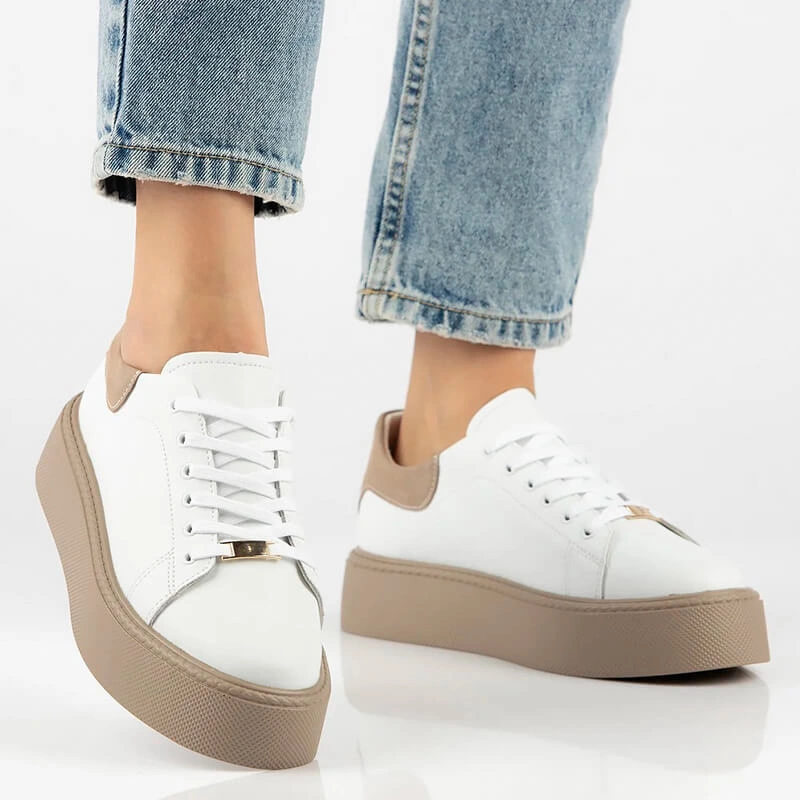 Skórzana cholewka w kolorze białym gwarantuje schludny, łatwy do utrzymania wygląd, a stabilna platforma nadaje delikatny efekt podwyższenia bez rezygnacji z wygody. Idealne do spacerów po mieście i spotkań ze znajomymi — sprawdzą się z dżinsami, jak i z casualową sukienką.