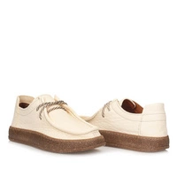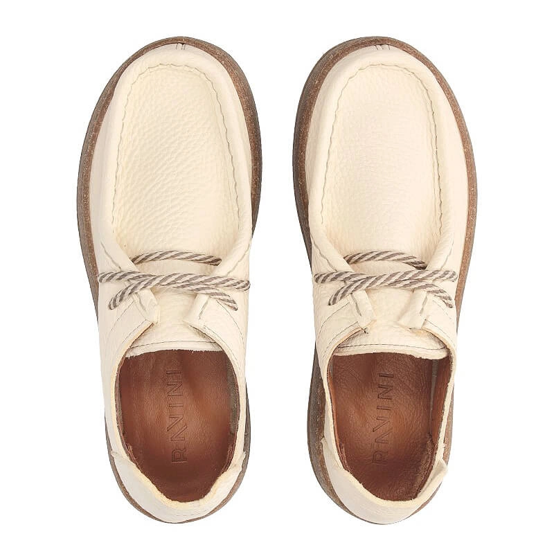 Sznurówki umożliwiają precyzyjne dopasowanie do kształtu stopy, co poprawia stabilność i komfort, a kremowy odcień dobrze komponuje się z jeansami, spódnicami i eleganckimi spodniami. Doskonałe na spotkania biznesowe, weekendowe wyjścia czy dopełnienie casualowych stylizacji.