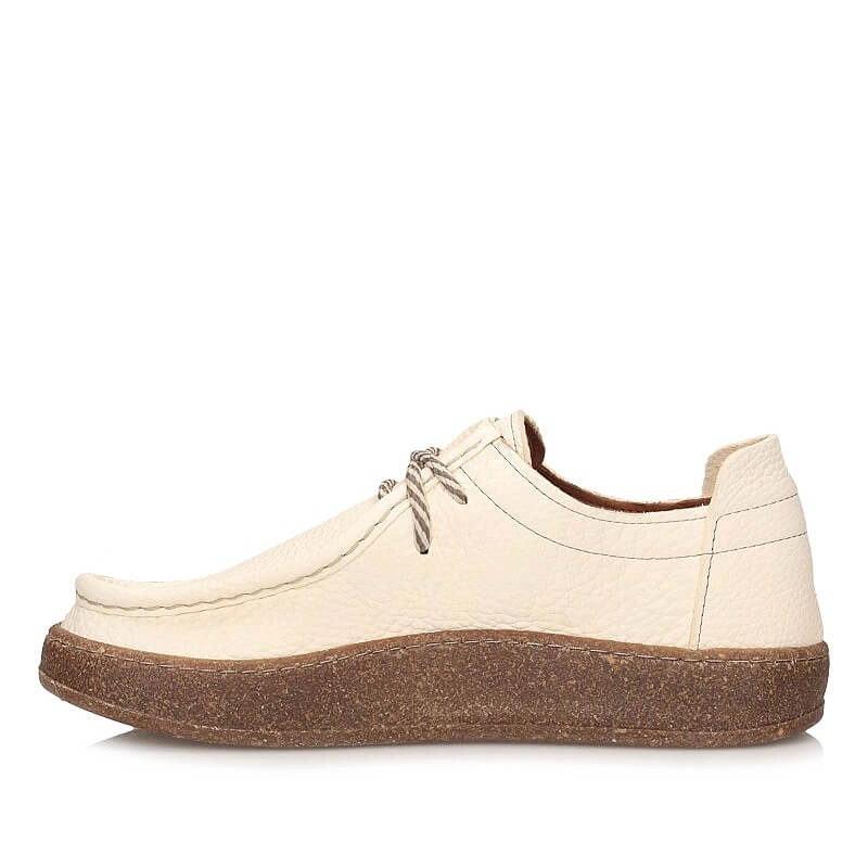 Półbuty damskie kremowe — skóra naturalna i płaska, elastyczna podeszwa