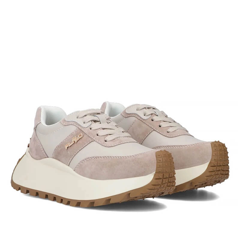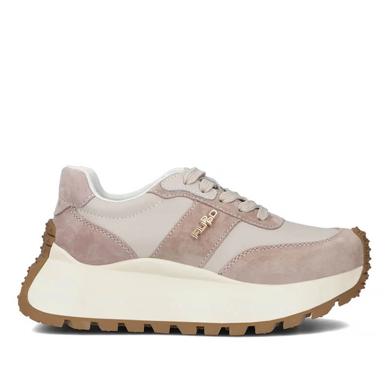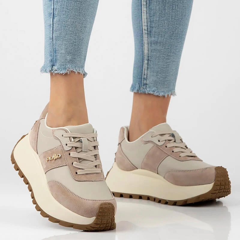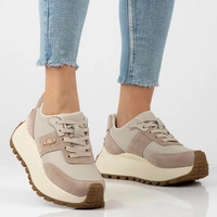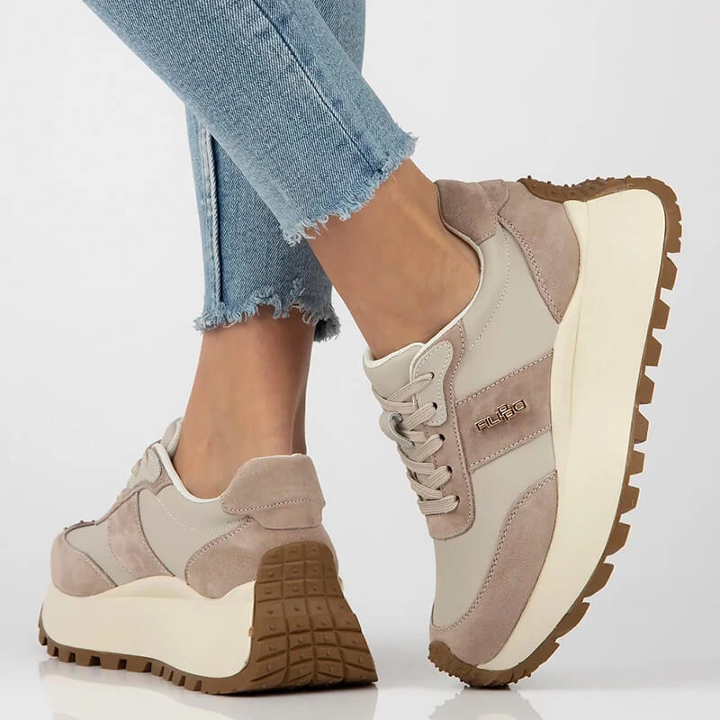 •  Sneakersy damskie Filippo DP6785/25 BE beżowe skórzane sznurowane na platformie