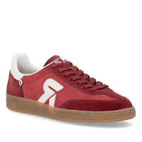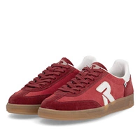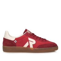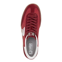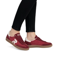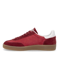 Sneakersy damskie czerwone — skóra zamszowa i płaska podeszwa