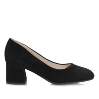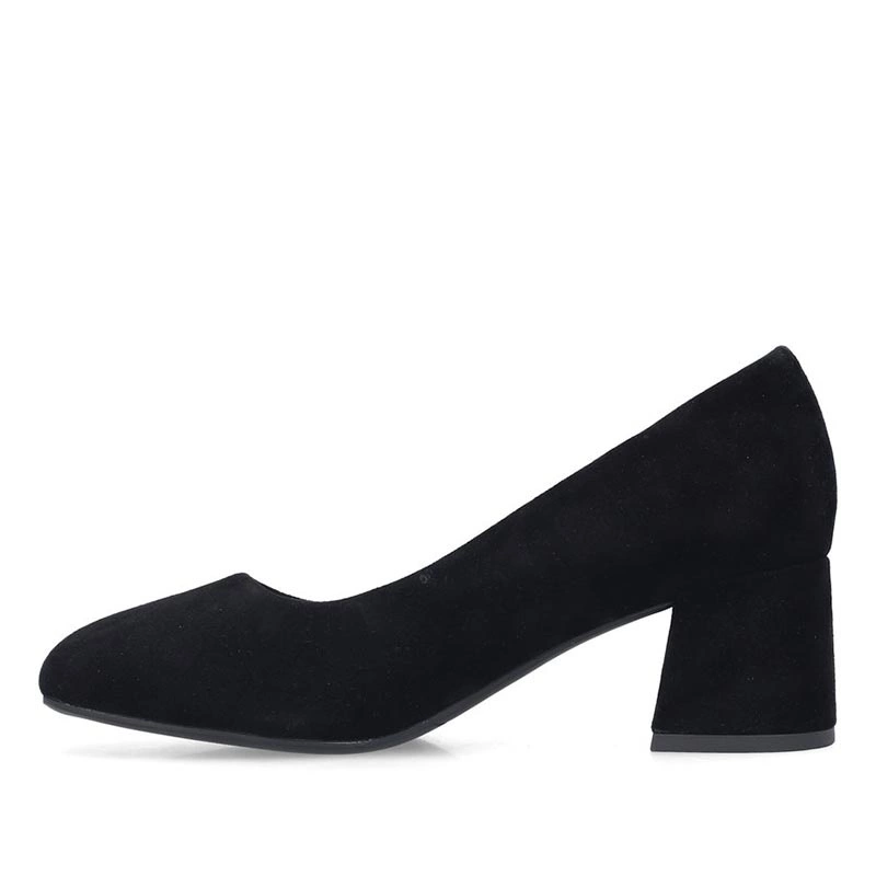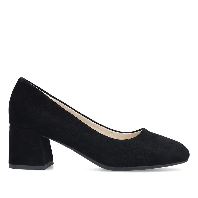 Czarne zamszowe czółenka na obcasie — materiał i wnętrze dla komfortu i estetyki