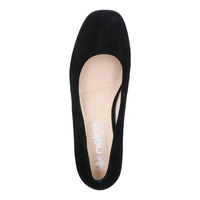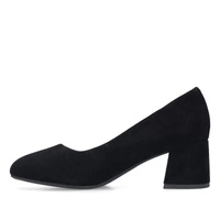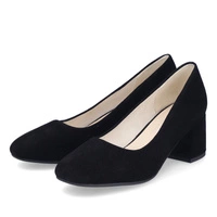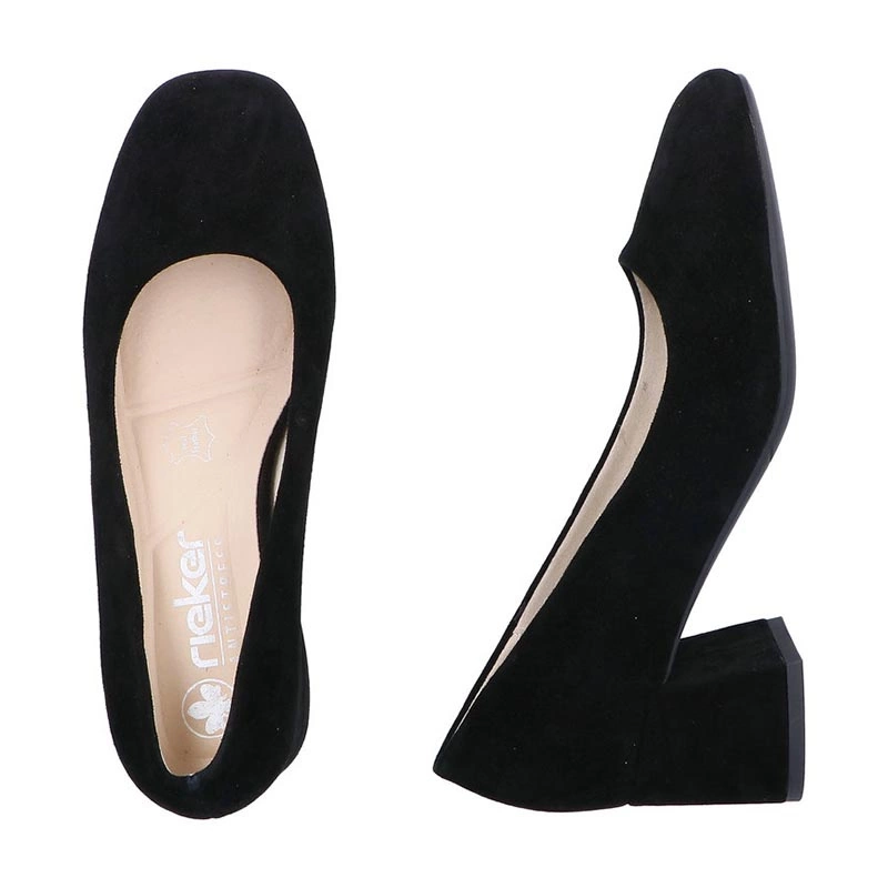 Eleganckie czółenka Rieker w czarnym zamszu — połączenie subtelnego wyglądu z praktycznymi rozwiązaniami, które sprawdzą się zarówno na co dzień, jak i przy okazjach wymagających bardziej wystawnego stroju.