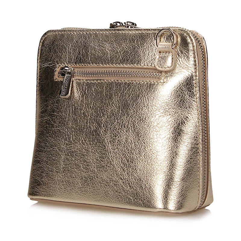 Znana oraz lubiana marka Toscanio przedstawia nam torebkę listonoszkę z najnowszej kolekcji. Model w szarym odcieniu wykonany został z wysokiej jakości skóry naturalnej. Fason w środku torebki ma dwie komory w tym środkową na zamek, idealnie sprawdzi się na kobiece drobiazgi. Z tyłu umieszczono małą kieszonkę także zapinaną na zamek. Dzięki długiemu regulowanemu paskowi możemy dopasować noszenie jej do naszych potrzeb.