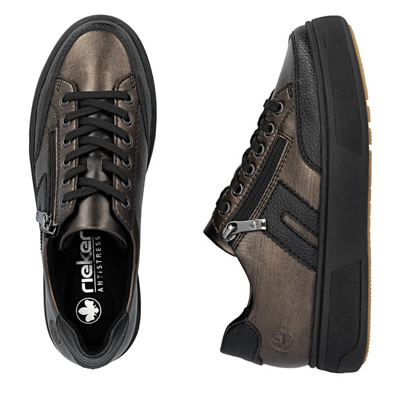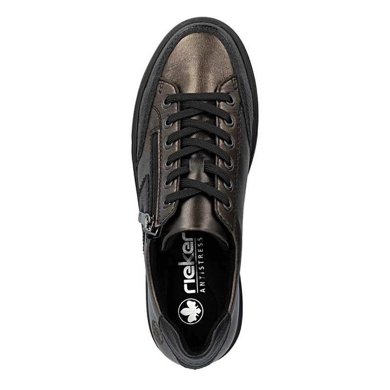 Nowoczesne damskie półbuty typu sneakers Rieker M7711-25 łączą elegancki wygląd z codziennym komfortem — przemyślana konstrukcja i jakość wykonania sprawdzą się zarówno w miejskich stylizacjach, jak i podczas dłuższych spacerów.