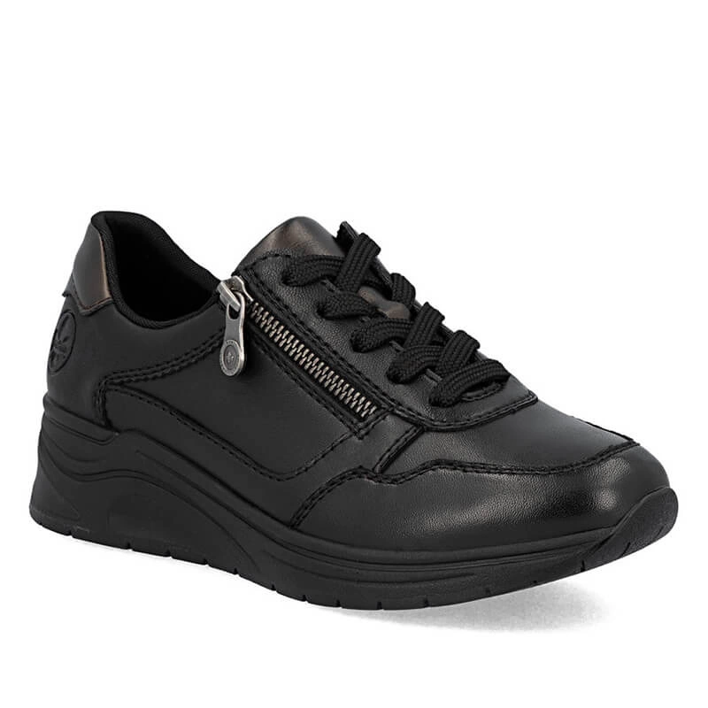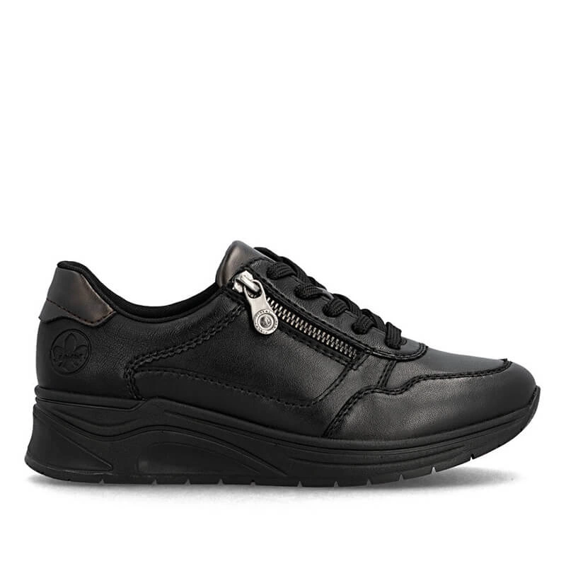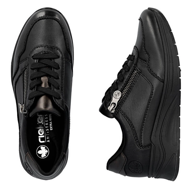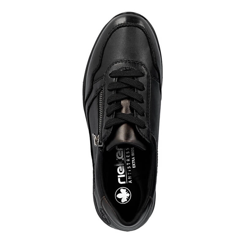 Casualowe czarne półbuty damskie znanej i szanowanej Niemieckiej marki Rieker pochodzące z najnowszej kolekcji.