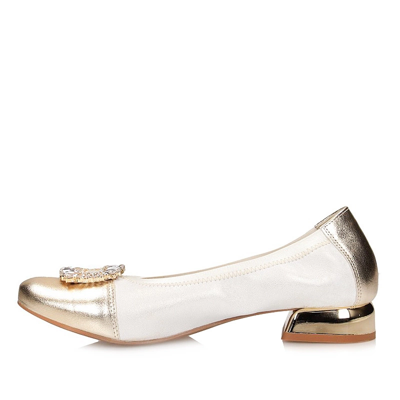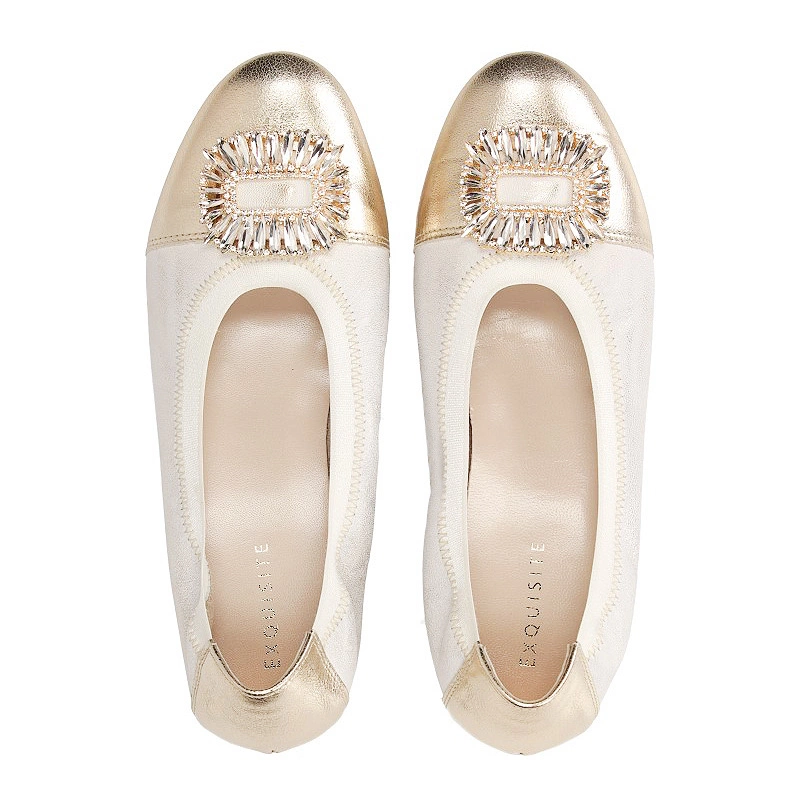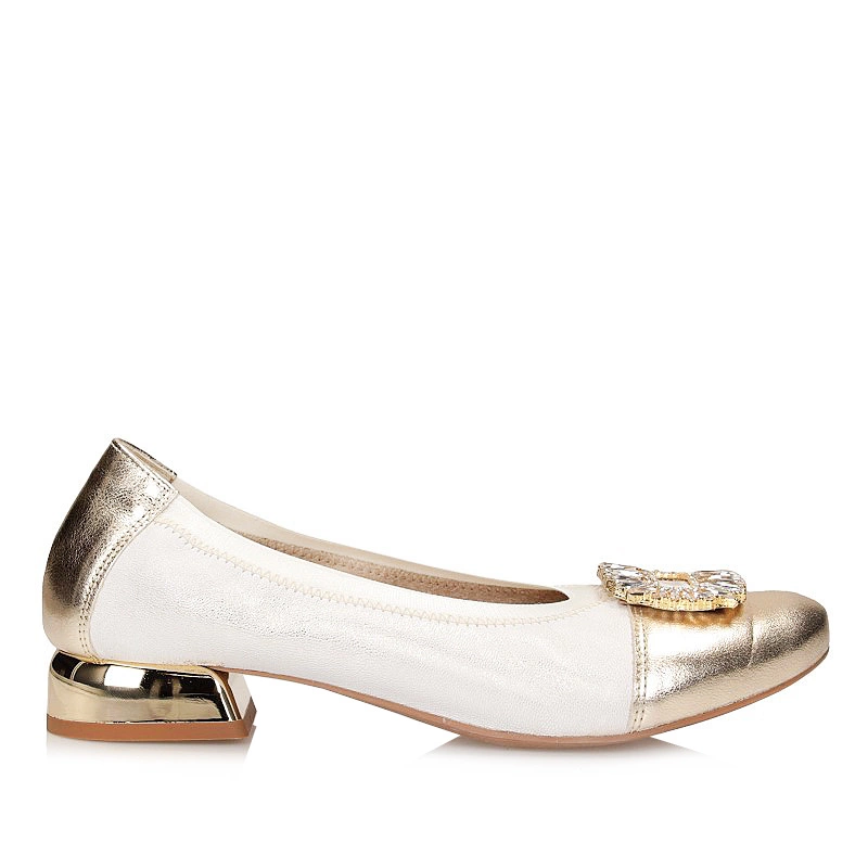 Złote Półbuty balerinki na płaskim obcasie znanej i szanowanej marki EXQUISITE pochodzące z najnowszej kolekcji.