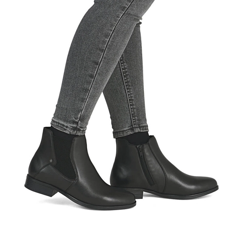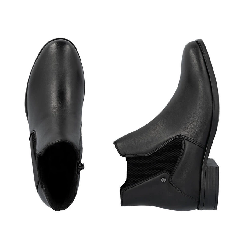 Stylowe czarne botki damskie znanej i szanowanej marki Rieker pochodzące z najnowszej kolekcji.