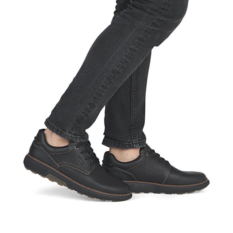 Casualowe czarne półbuty męskie znanej i szanowanej Niemieckiej marki Rieker pochodzące z  najnowszej kolekcji.
