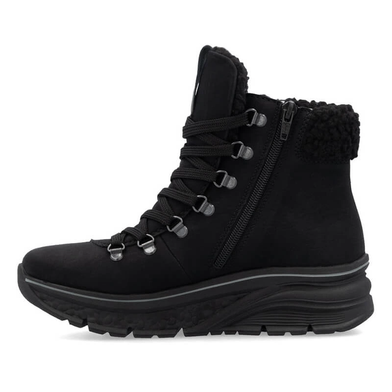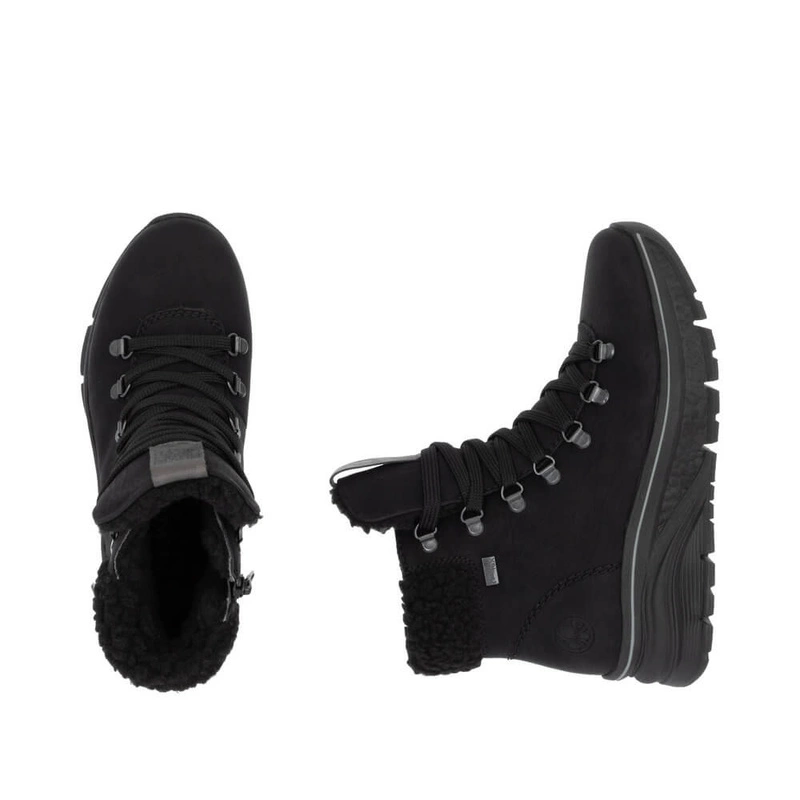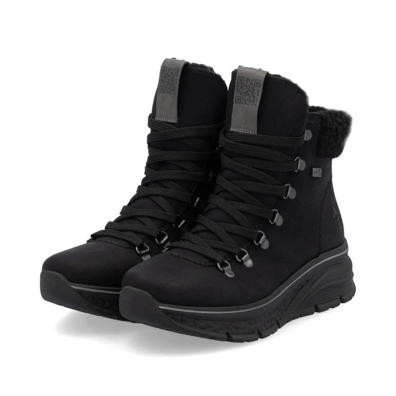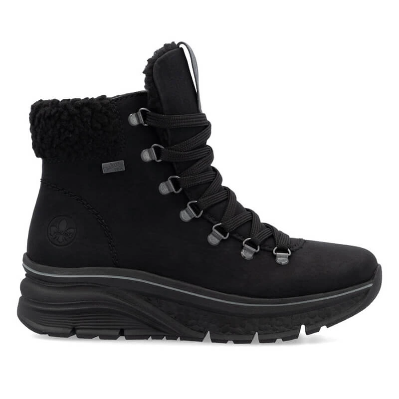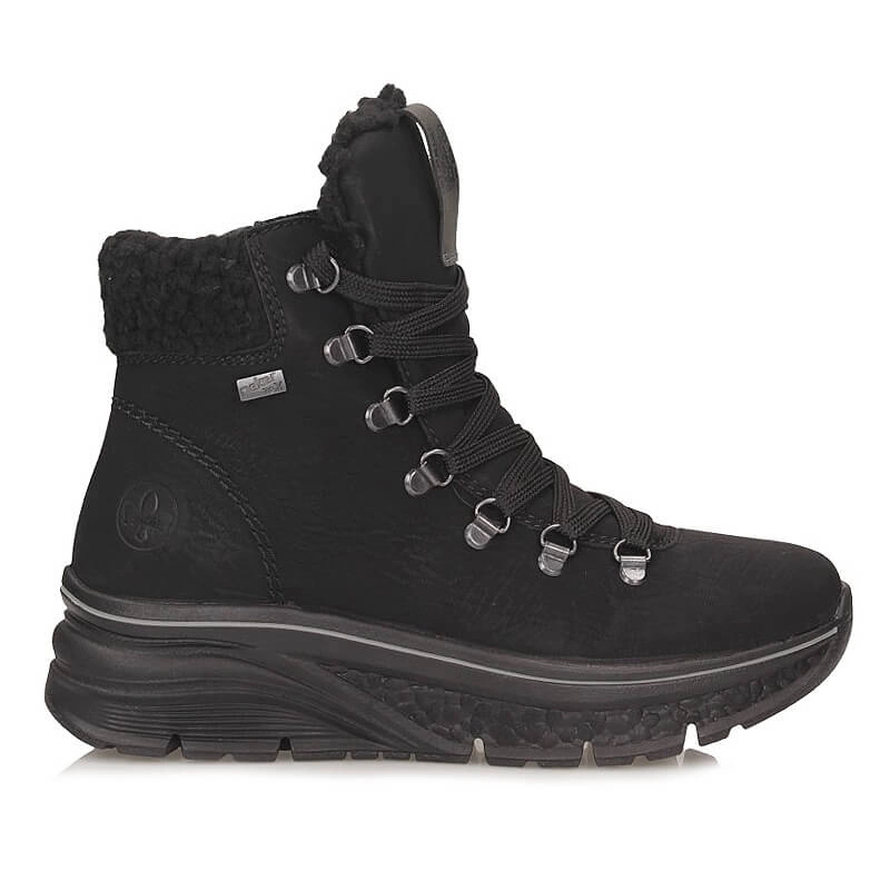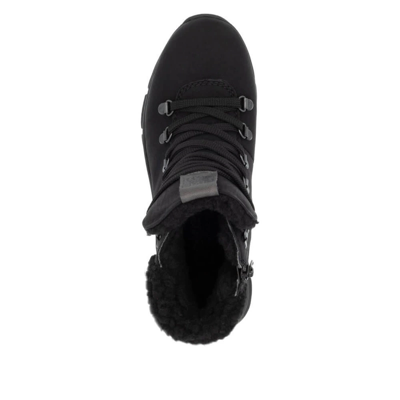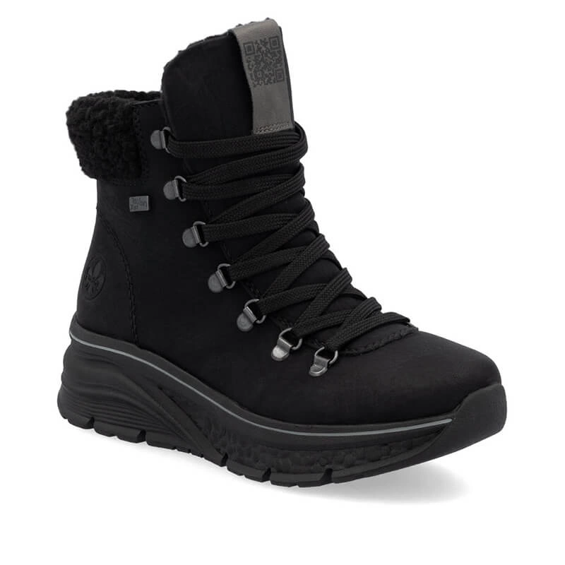Casualowe czarne sznurowane botki damskie znanej i szanowanej Niemieckiej marki Rieker pochodzące z najnowszej kolekcji.