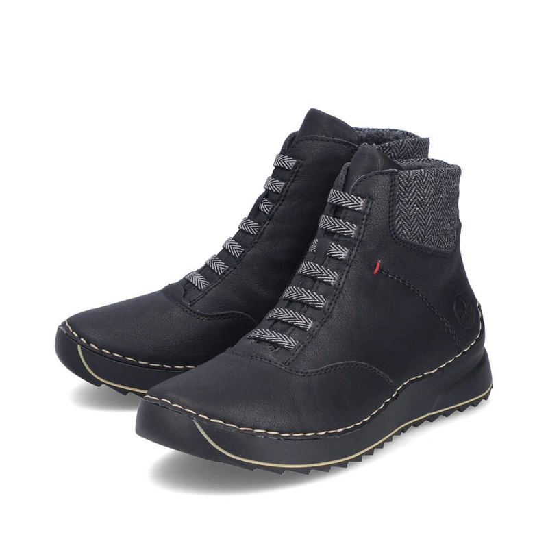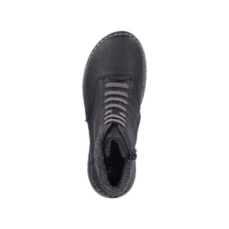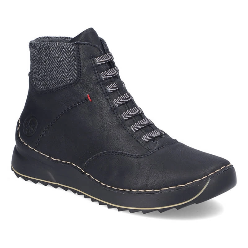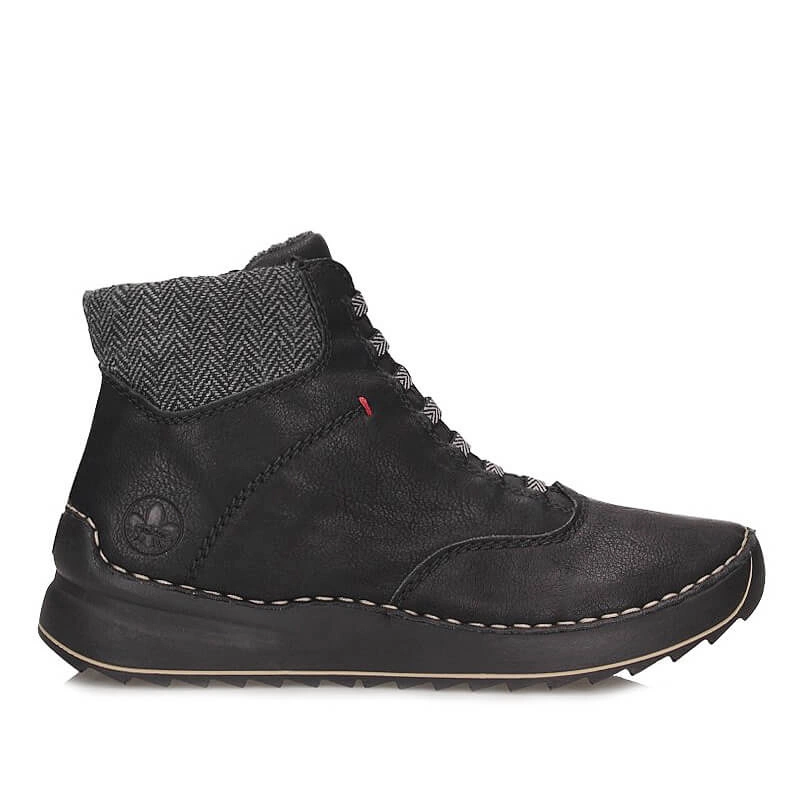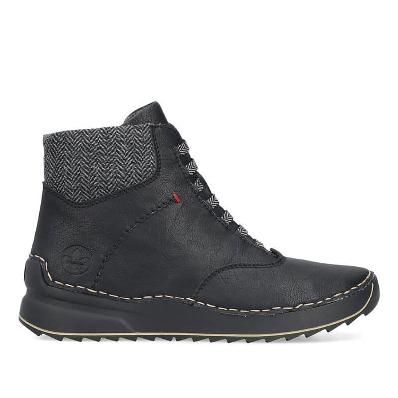 Codzienne czarne botki damskie znanej i szanowanej marki Rieker pochodzące z najnowszej kolekcji.