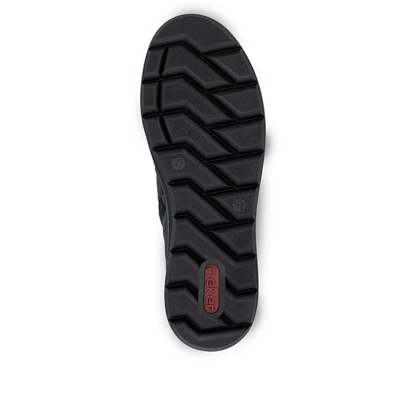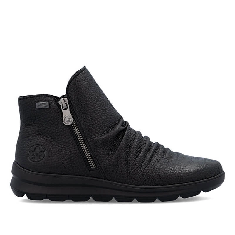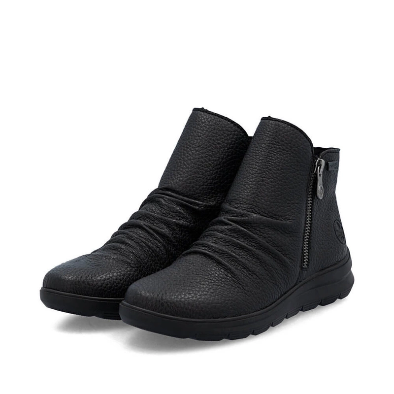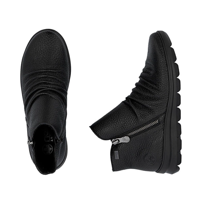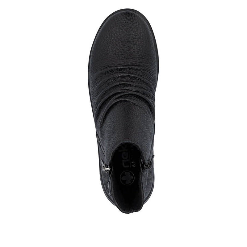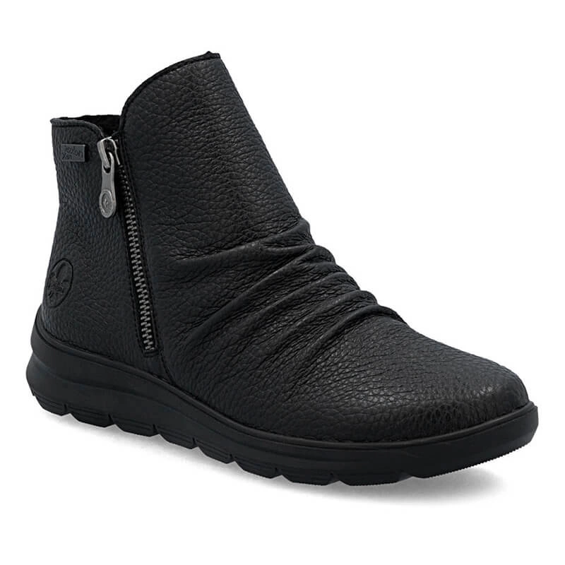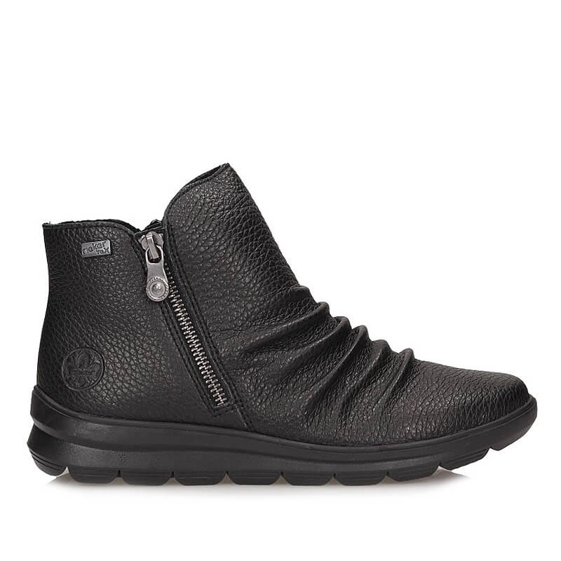 Klasyczne czarne damskie botki na zamek znanej i szanowanej Niemieckiej marki Rieker pochodzące z najnowszej kolekcji.