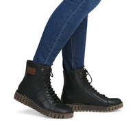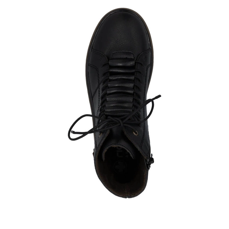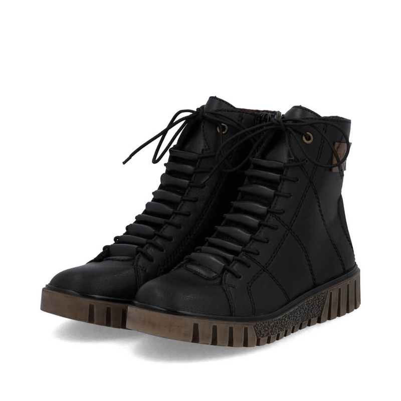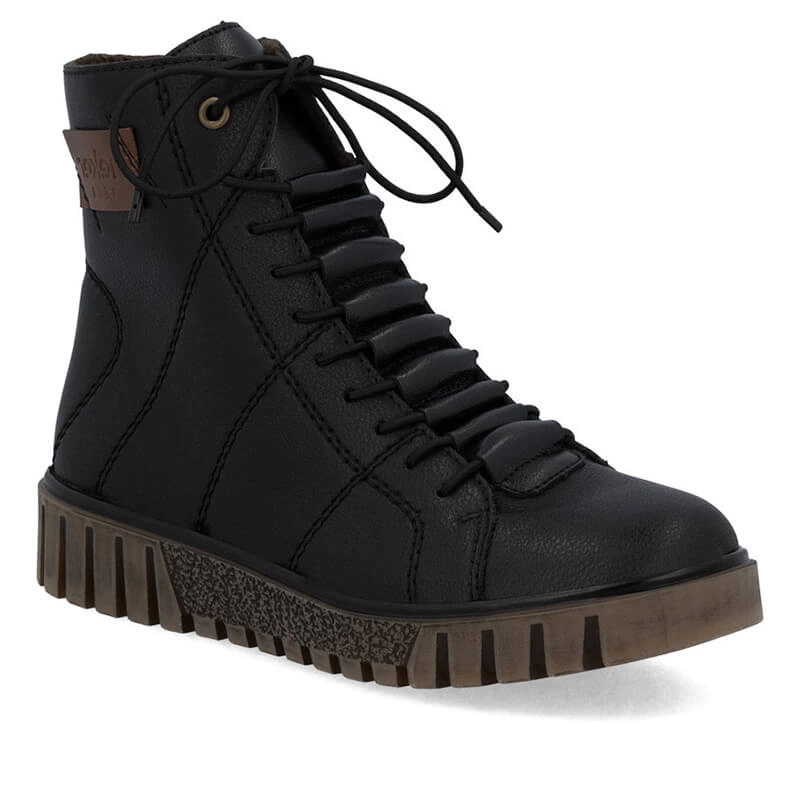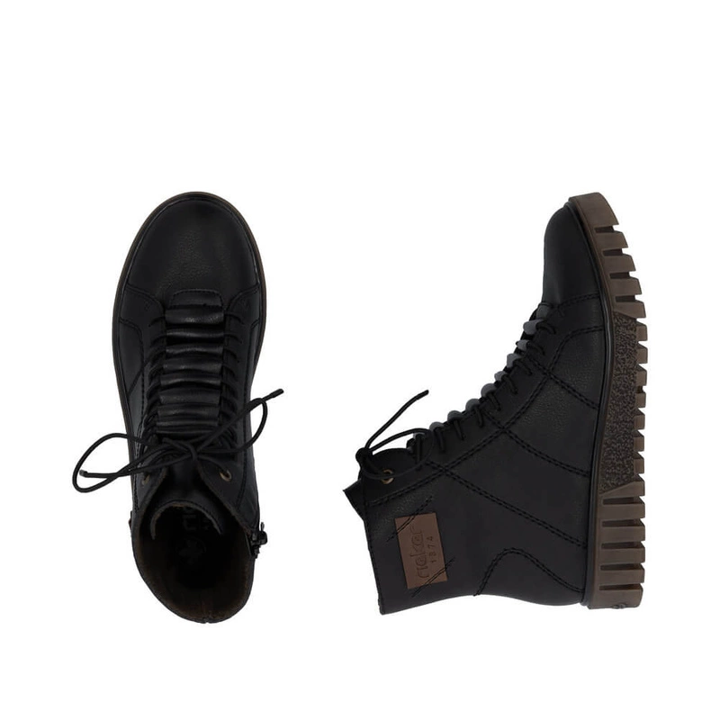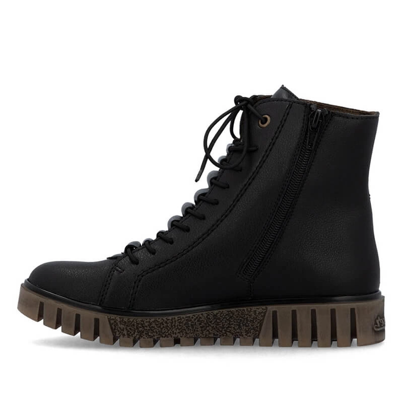 Klasyczne czarne sznurowane botki damskie znanej i szanowanej marki Rieker pochodzące z najnowszej kolekcji.