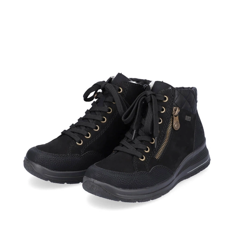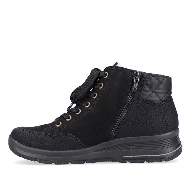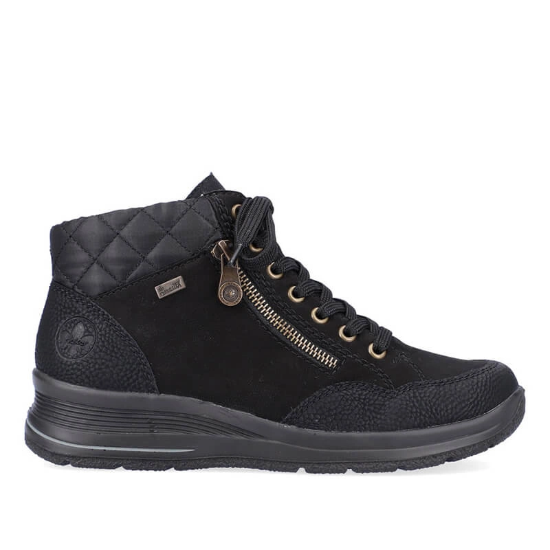 Klasyczne czarne botki damskie znanej i szanowanej marki Rieker pochodzące z najnowszej kolekcji.