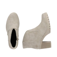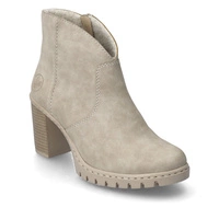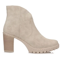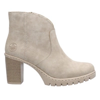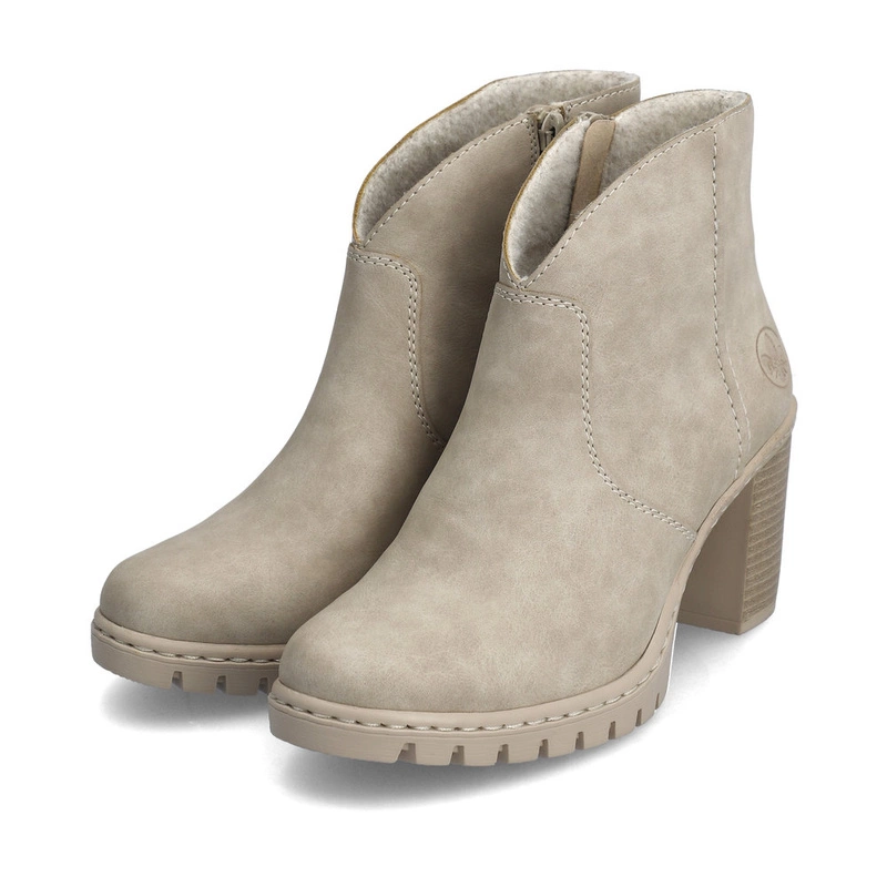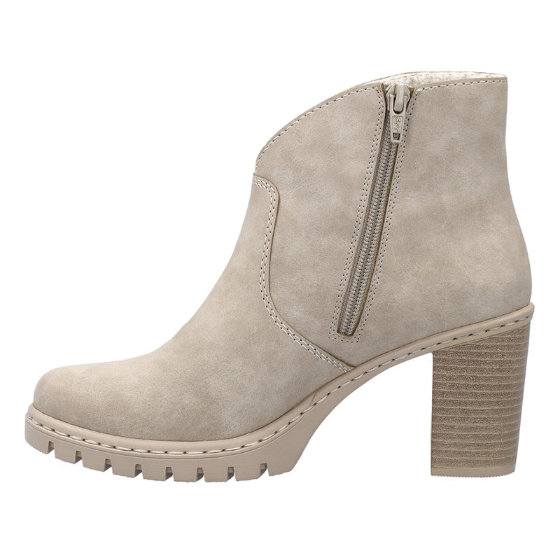 Modne beżowe botki damskie na klocku znanej i szanowanej marki Rieker pochodzące z najnowszej kolekcji.