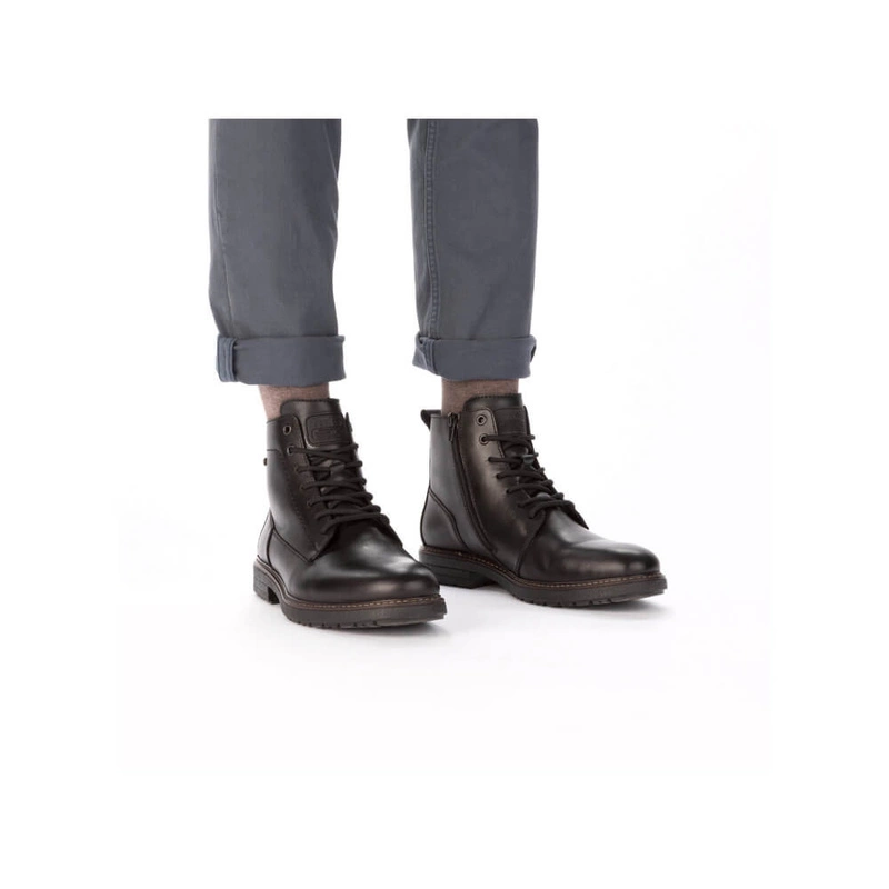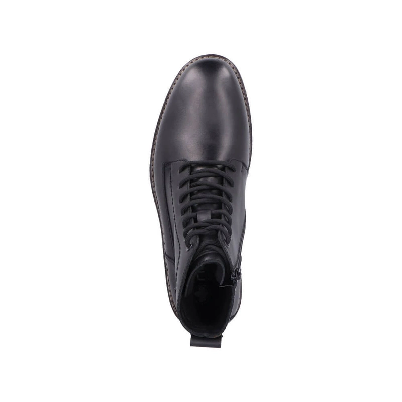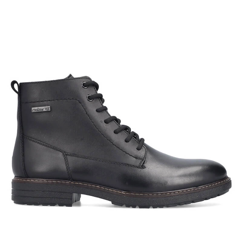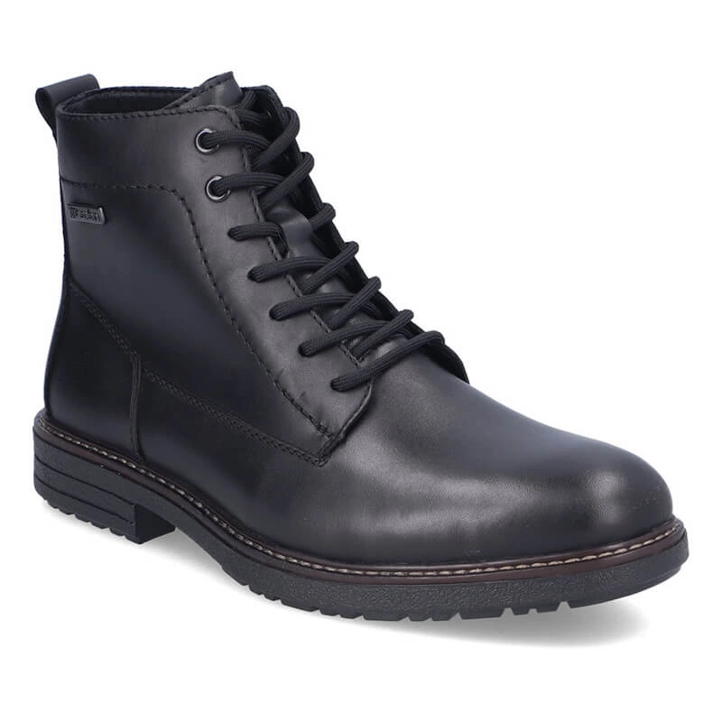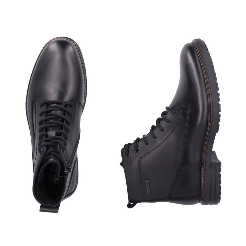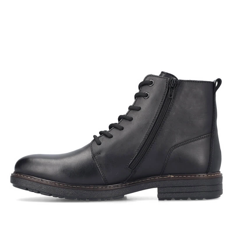 Klasyczne czarne sznurowane botki męskie znanej i szanowanej marki Rieker pochodzące z najnowszej kolekcji.