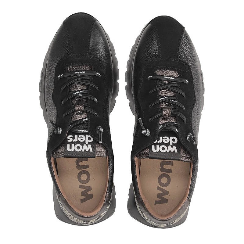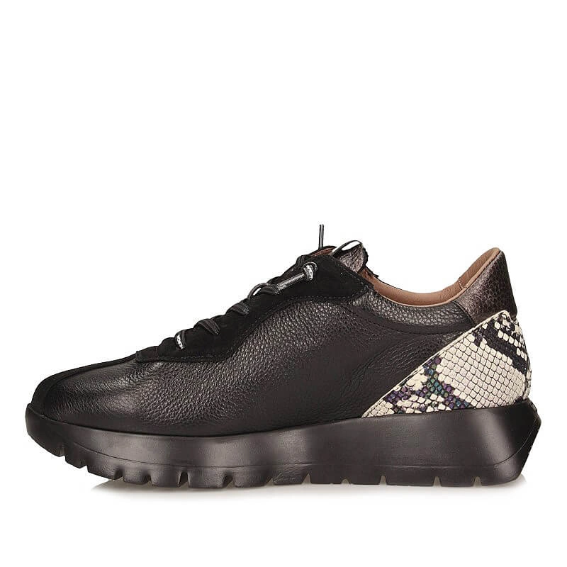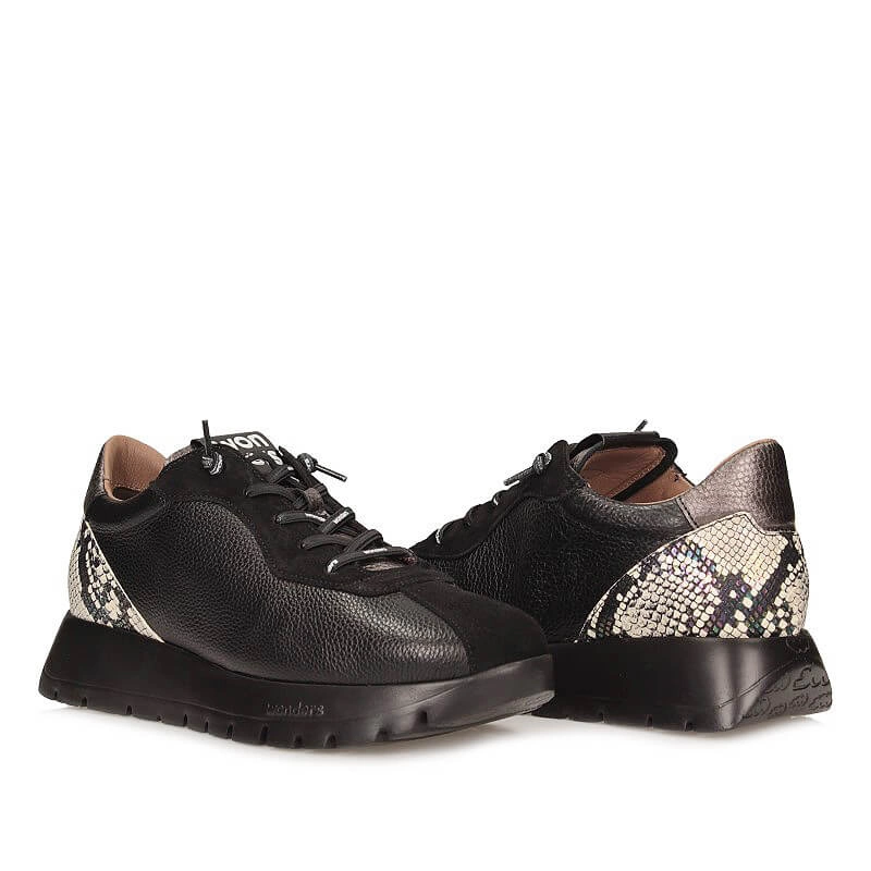 Czarne półbuty sneakersy — wnętrze ze skóry naturalnej i podeszwa na platformie