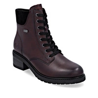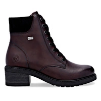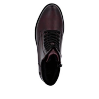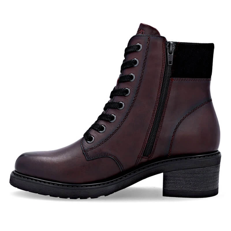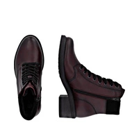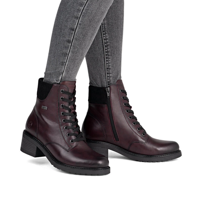 Sznurowane botki na klocku dla kobiet — bordowe i czarne: dopasowanie i stabilność