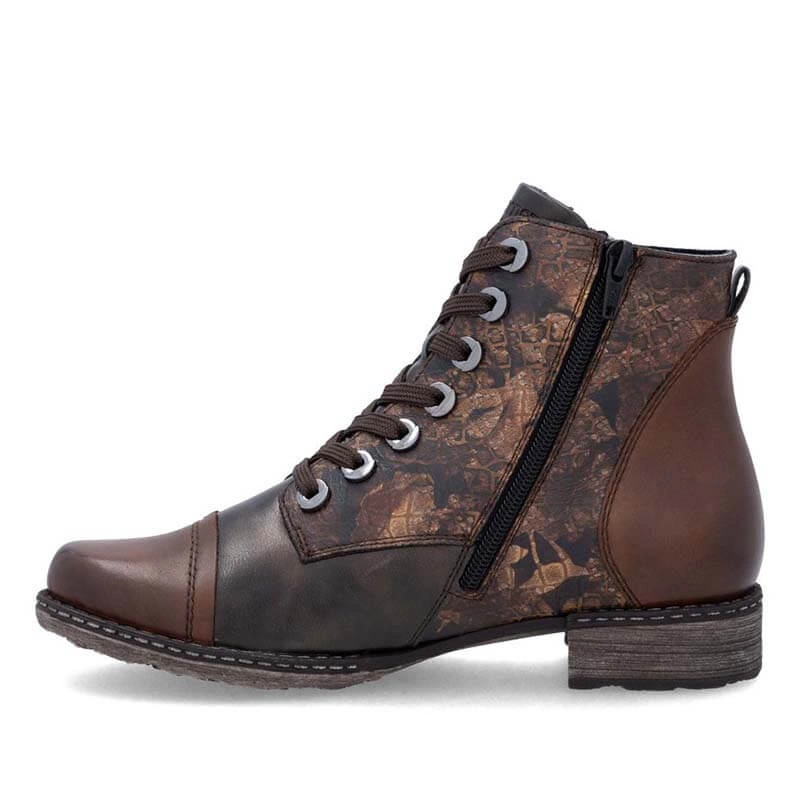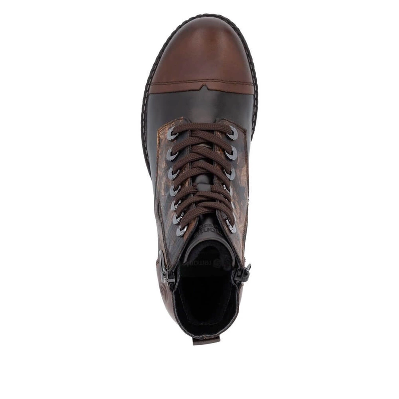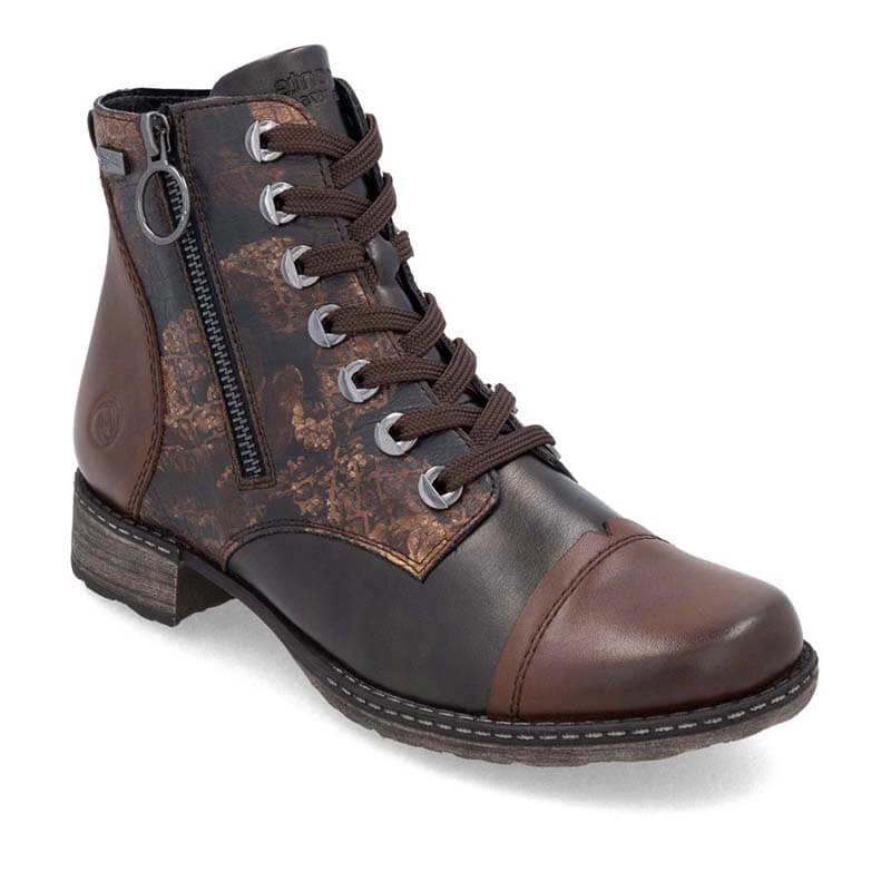 Eleganckie, sznurowane botki damskie Remonte D4382-25 — uniwersalne obuwie na chłodniejsze dni, łączące stylowy wygląd z praktycznymi rozwiązaniami. Projekt skupia się na komforcie noszenia i łatwości dopasowania do codziennych stylizacji.