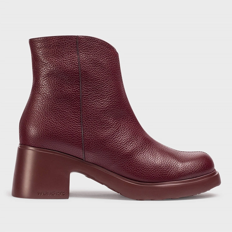 Wygodne modne botki damskie na klocku Wonders E-7125 FLYTRES 25 VINO