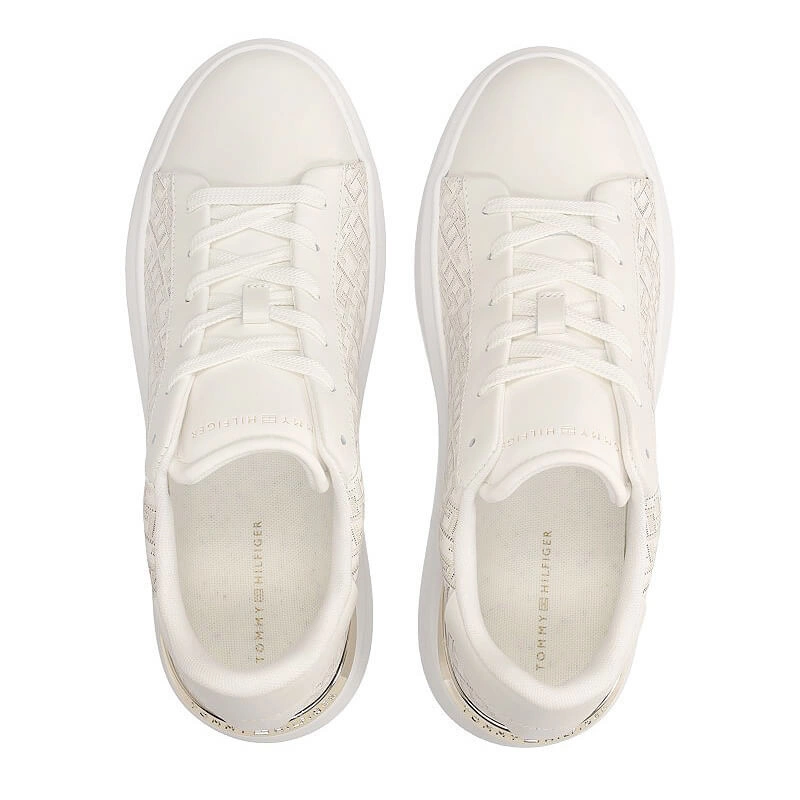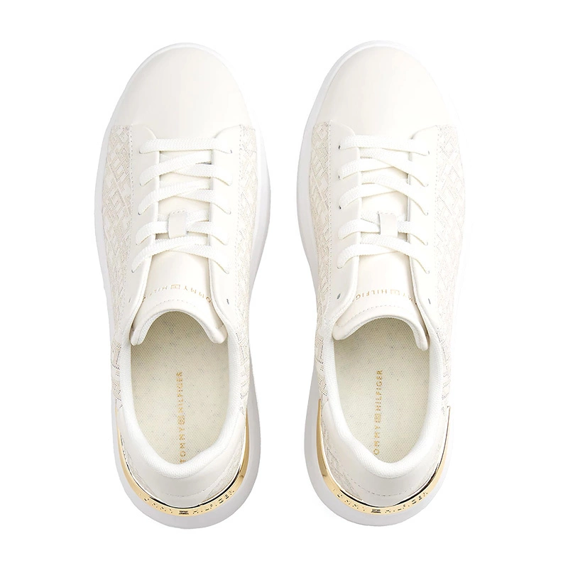 Model FW0FW09155 YA8 W5G Ivory Silk od Tommy Hilfiger łączy minimalistyczną estetykę z wygodą dnia codziennego. Neutralna paleta bieli z beżowo‑złotymi akcentami sprawia, że buty łatwo dopasujesz do większości stylizacji, od casualu po smart casual.