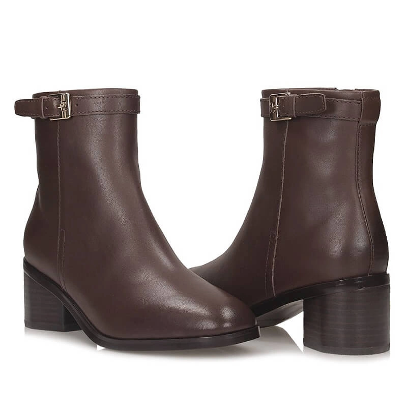 Wyrafinowane botki Tommy Hilfiger w odcieniu Legacy Brown łączą klasykę z wygodą na co dzień. Skórzana cholewka nadaje im elegancji, a zoptymalizowana wysokość obcasa zapewnia naturalny krok przez wiele godzin użytkowania.