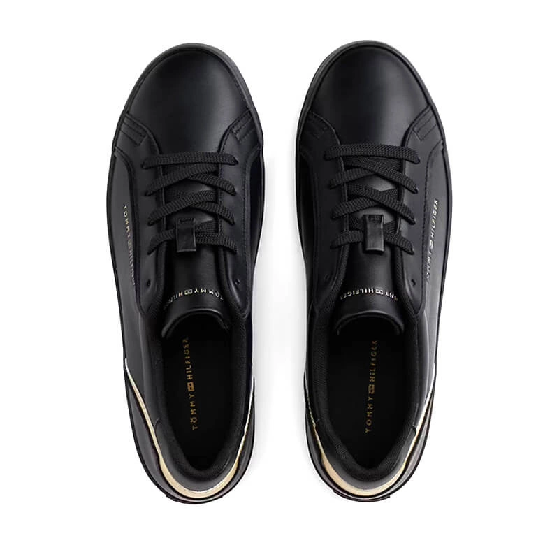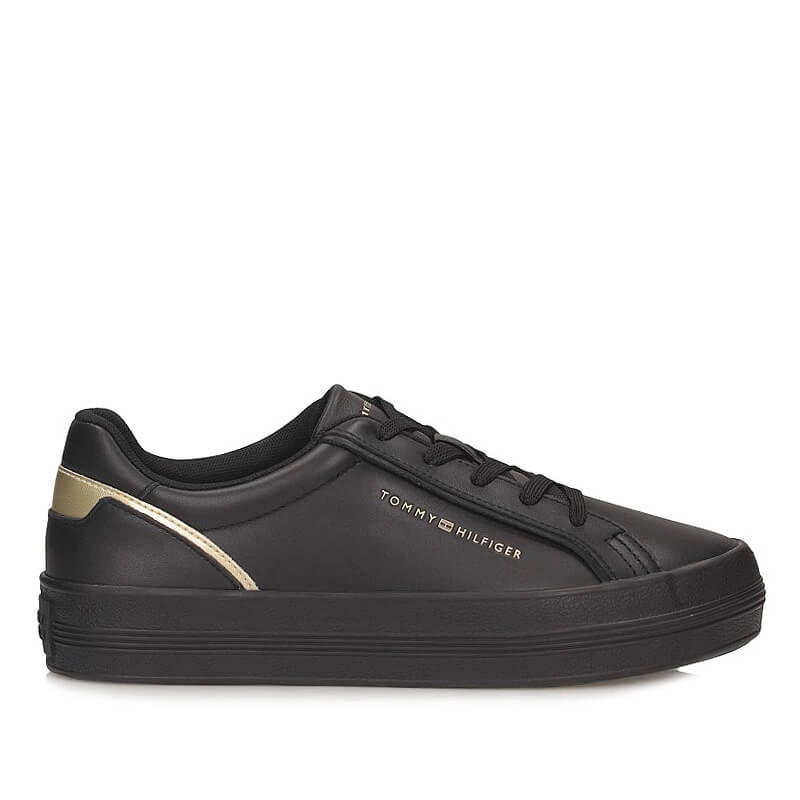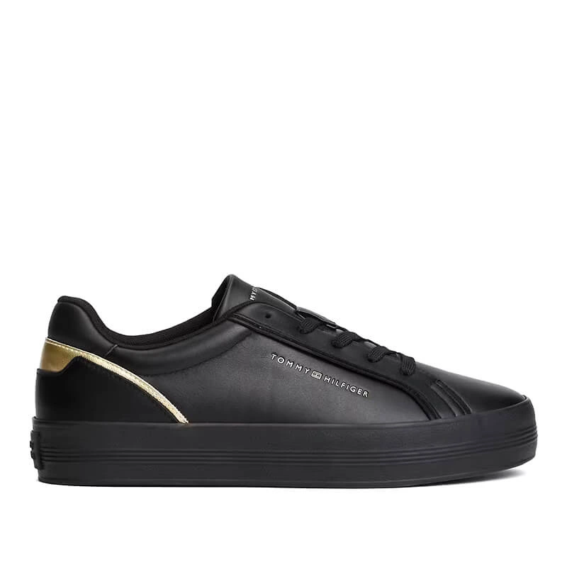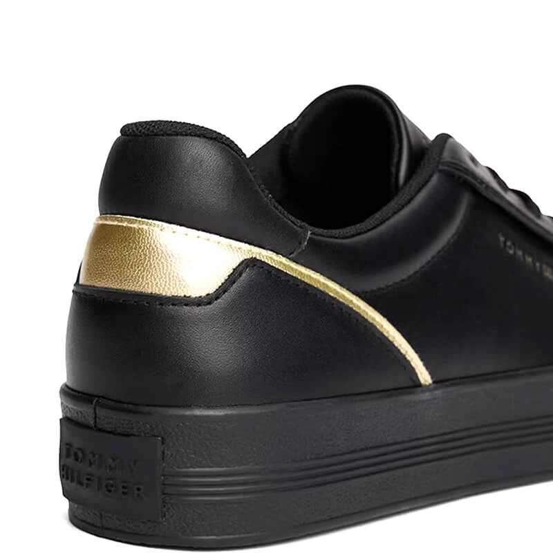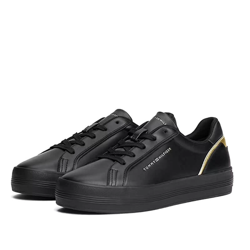 Minimalistyczna sylwetka, dopracowane detale i wygoda na co dzień — damskie sneakersy Tommy Hilfiger FW0FW08683 z czarno‑złotymi akcentami łączą elegancję z funkcjonalnością, dzięki czemu łatwo dopasujesz je do wielu stylizacji od rana do wieczora.