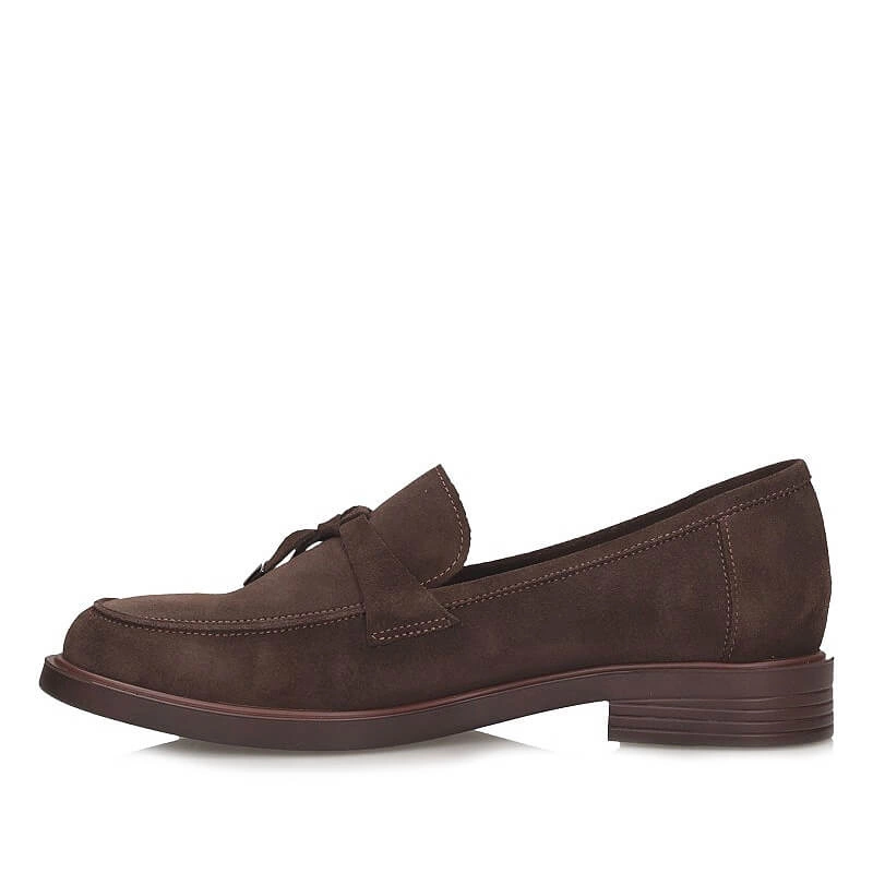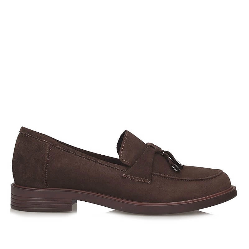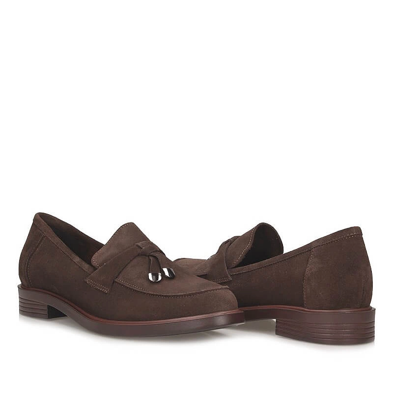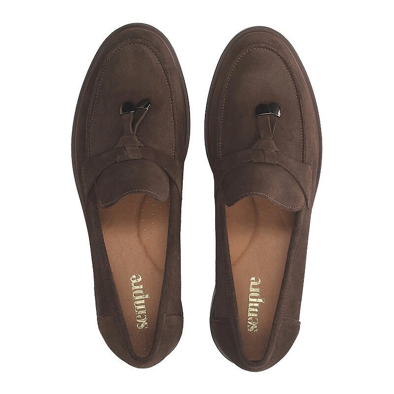 • Półbuty mokasyny wsuwane damskie Sempre 24-651 brąz-zamsz Loafersy