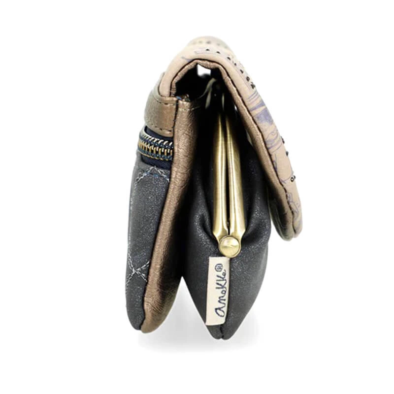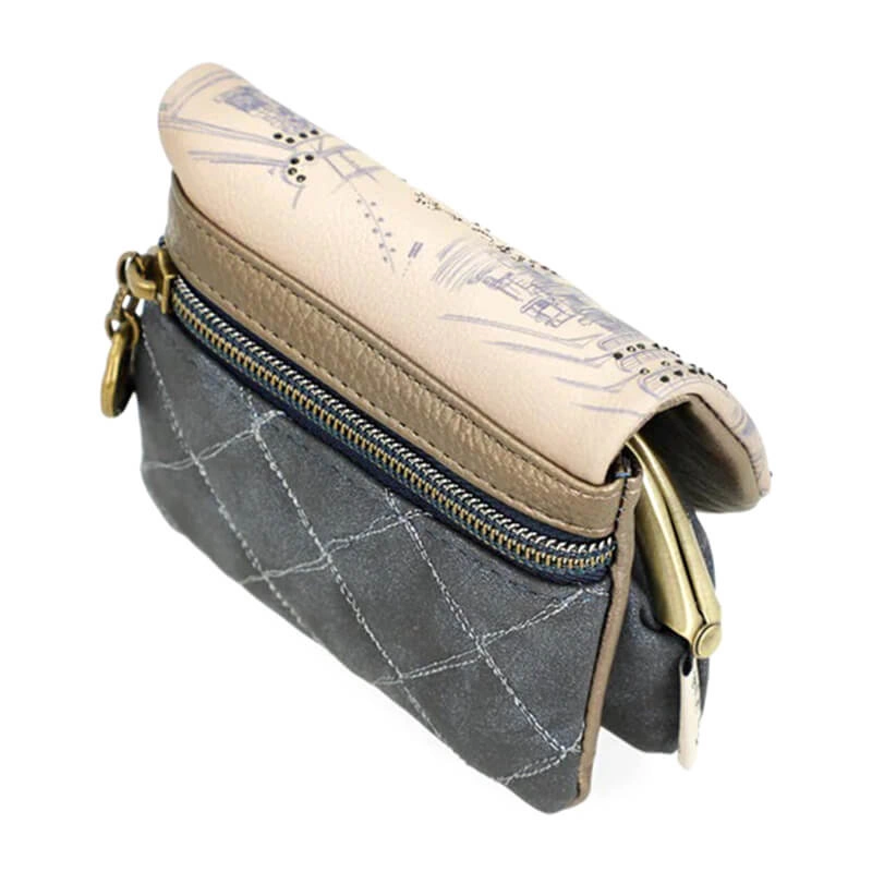 Komfort noszenia i estetyka: wykonana ze skóry ekologicznej, która imituje naturalną fakturę, ale pozostaje łatwa w pielęgnacji — wystarczy przetrzeć wilgotną ściereczką, by usunąć zabrudzenia. Kompaktowy format: niewielkie wymiary sprawiają, że mieści podstawowe środki płatnicze i drobne, a jednocześnie bezproblemowo zmieści się w małej torebce lub kieszeni płaszcza podczas codziennych zakupów lub krótkich wyjść.