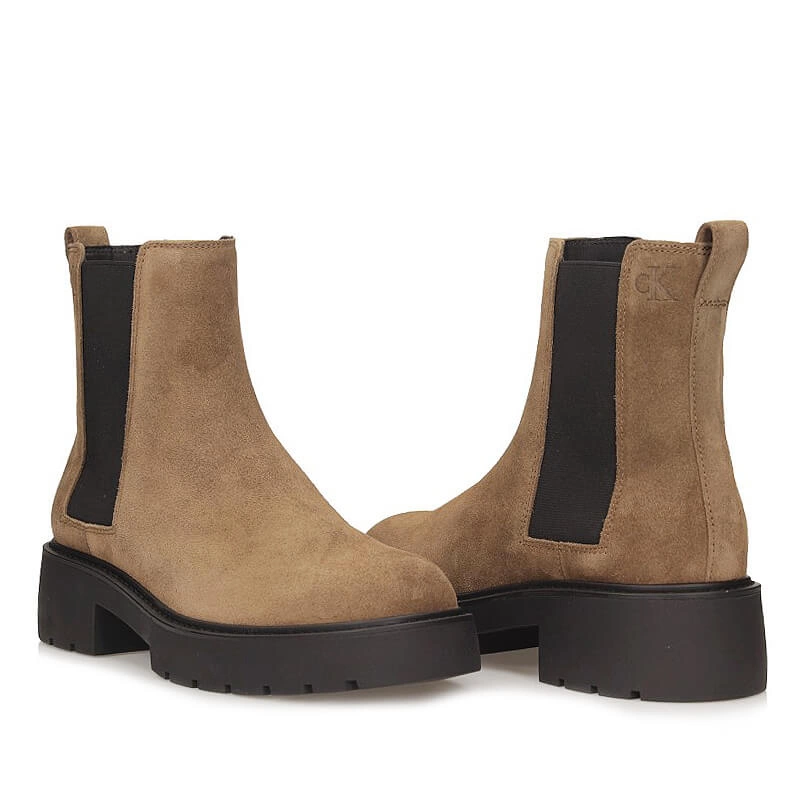 • cholewka z miękkiej skóry zamszowej w kolorze beżowym
