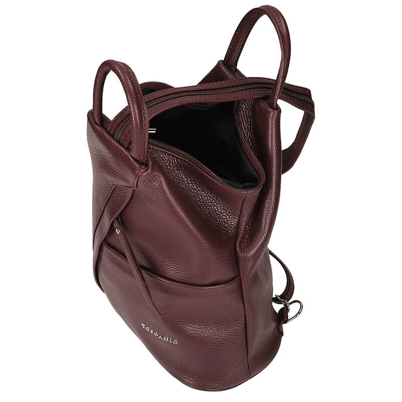 • Klasyczny damski Plecak Toscanio z asymetrycznym zapięciem F170 BORDO D54