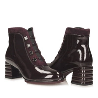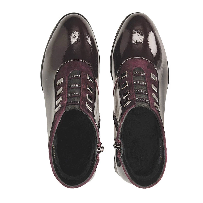 Lakierowane botki damskie na zamek S.Barski CR52-696 WINE