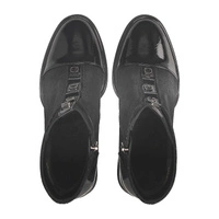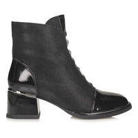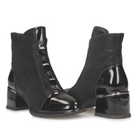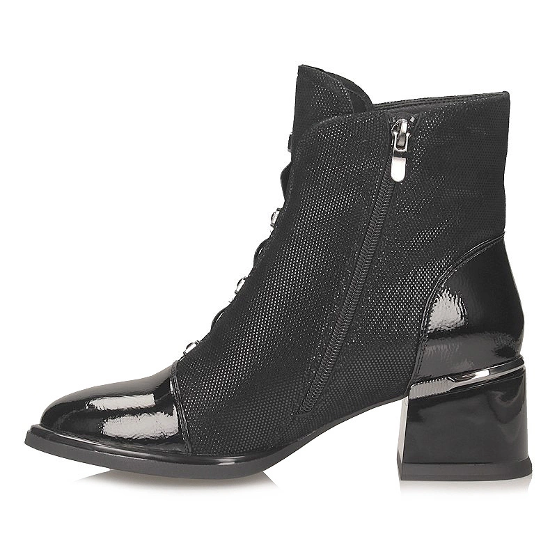 Zamek przy kostce pozwala na sprawne wkładanie i zdejmowanie obuwia, a połączenie skóry ekologicznej z materiałem tekstylnym we wnętrzu poprawia oddychalność i komfort przy dłuższym noszeniu. Przykłady zastosowania: szybkie przygotowanie rano przed pracą, podróże i krótkie spacery po mieście.