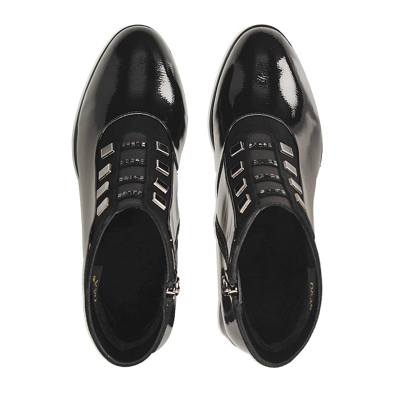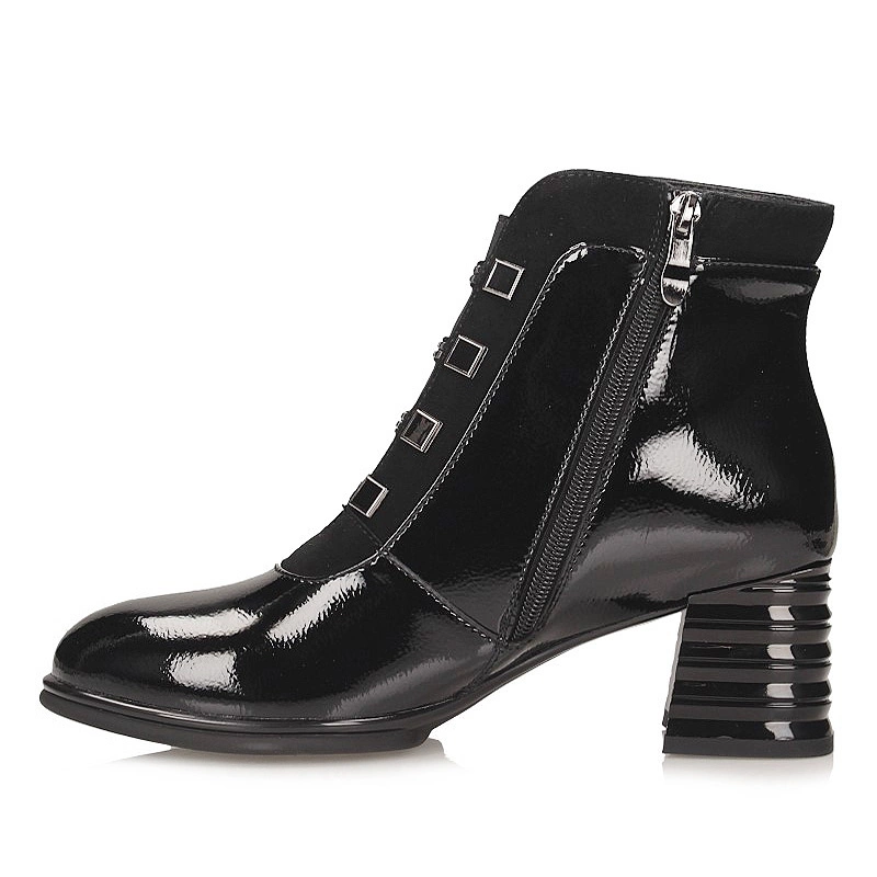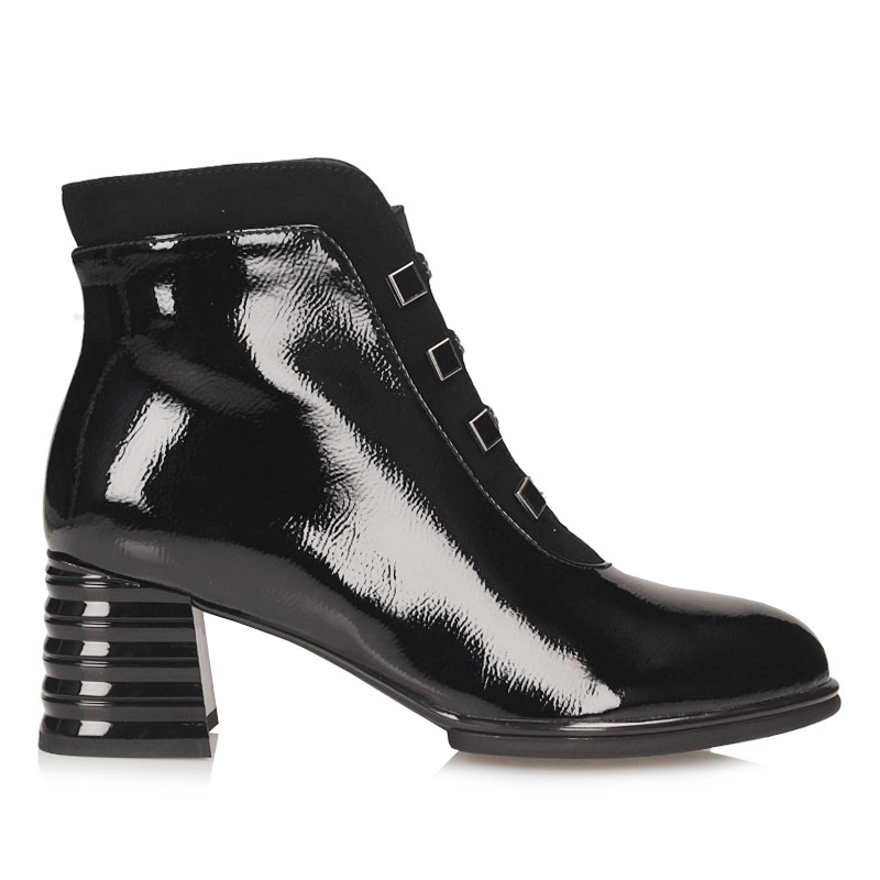 Połączenie szykownego, lśniącego frontu z klasycznym fasonem typu Chelsea daje model idealny do stylizacji zarówno formalnych, jak i codziennych. Wyraziste, czarne wykończenie nadaje elegancji, a 7-centymetrowy obcas zapewnia wyraźne wysmuklenie sylwetki przy zachowaniu stabilności podczas chodzenia — sprawdzą się przy spotkaniach biznesowych, jak i podczas wieczornych wyjść z przyjaciółmi.