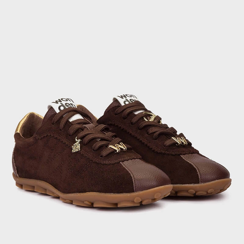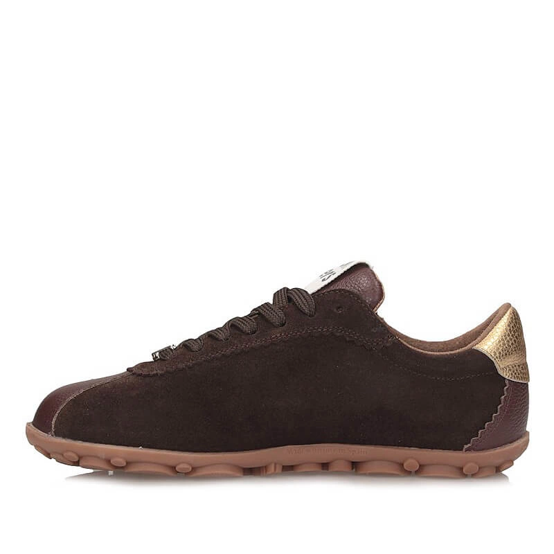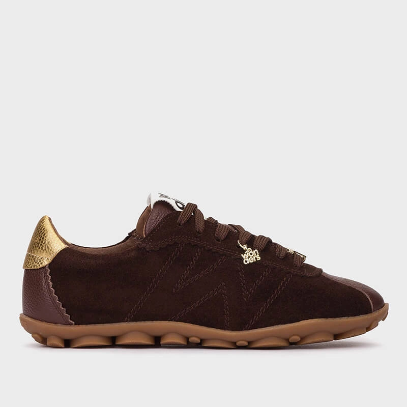 Stylowe półbuty w dwóch wersjach kolorystycznych — złotej i brązowej — łączą miejską estetykę z uniwersalnością. Skórzane elementy z zewnątrz oraz stonowane wykończenie pozwalają nosić je zarówno do casualowych jeansów, jak i do bardziej eleganckiej stylizacji typu smart-casual; sprawdzą się podczas spotkań towarzyskich, w pracy typu kreatywnego oraz na weekendowe wyjścia.