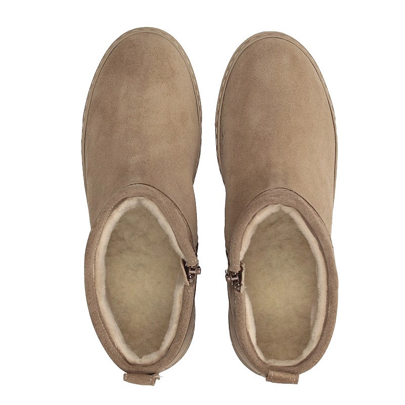 • Beżowe skórzane Botki śniegowce damskie Ryłko 0EVN4_Z_8TAF